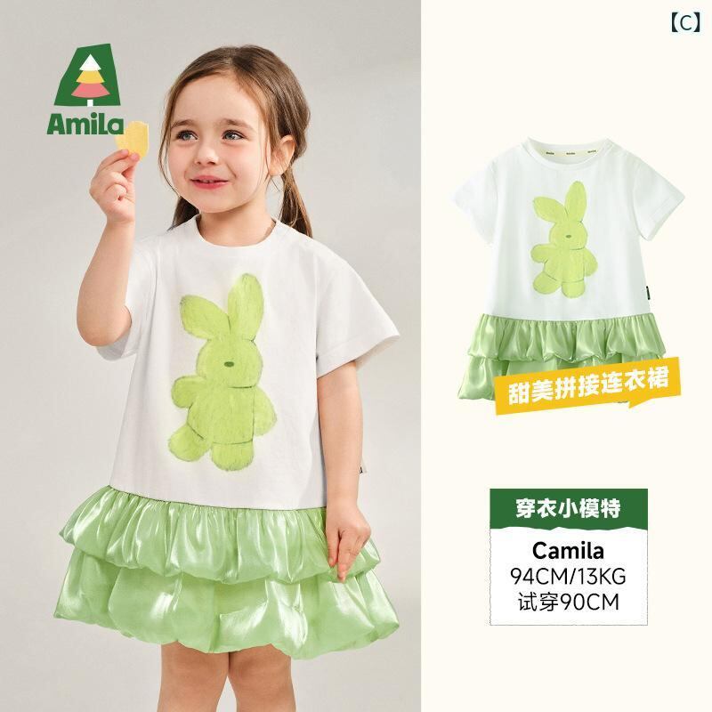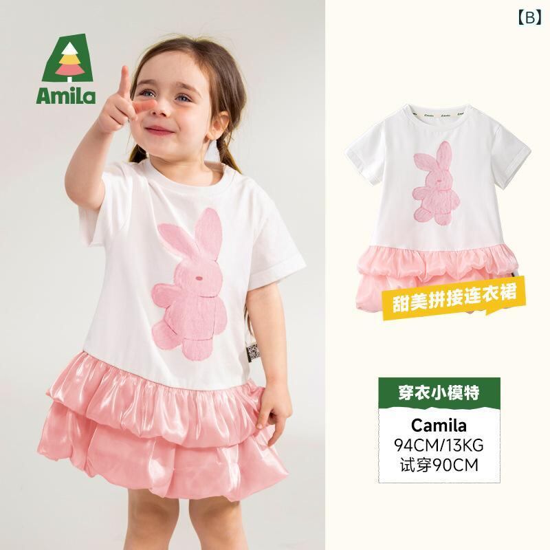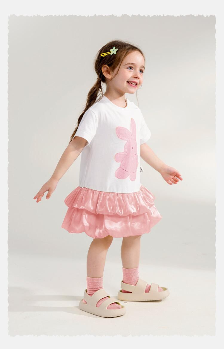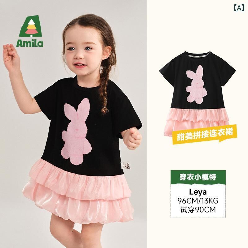 ワンピース キッズ 女の子 かわいい ウサギ Tシャツ ケーキスカート コットン 子供服 チュールスカート 90 100 110 120 130 140 夏
