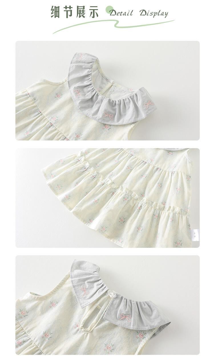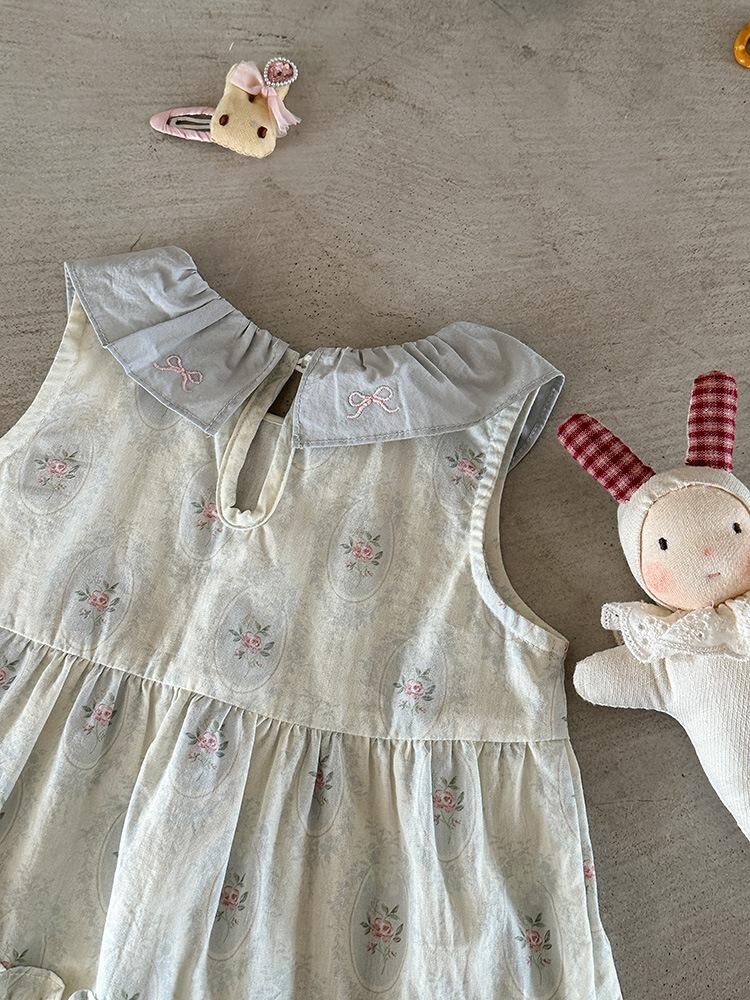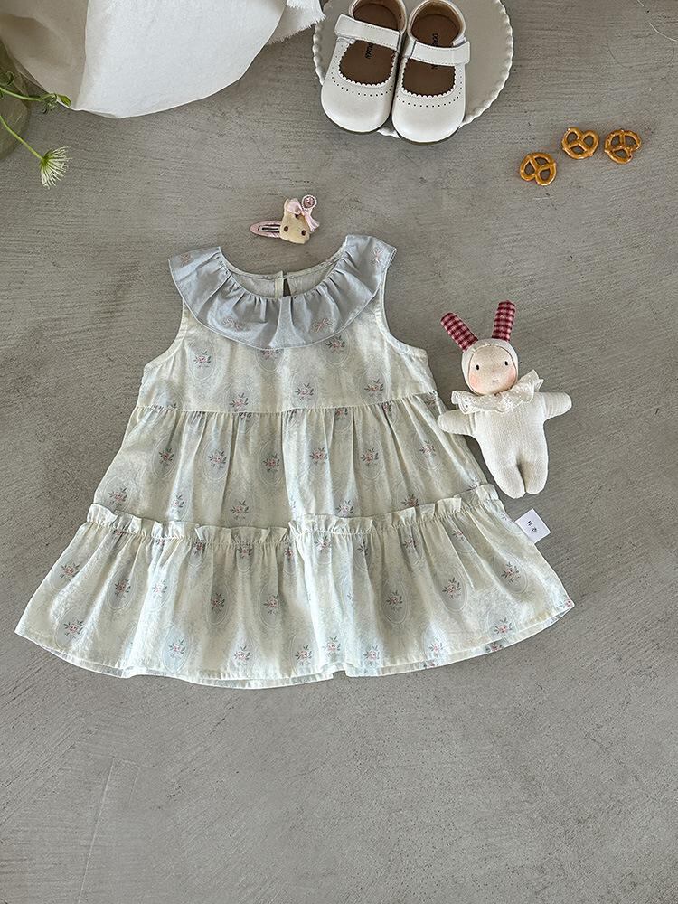ワンピース ベビー 女の子 ノースリーブ 花柄 Aラインスカート コットン100% 幼児 普段使い かわいい 薄手 ブルー 73cm 80cm 90cm 100cm