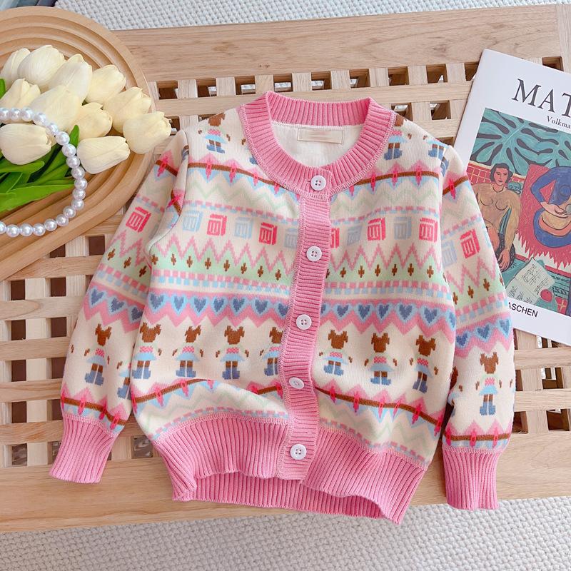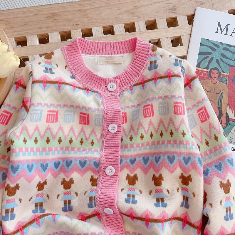 ニット カーディガン ガールズ 裏起毛 厚手 子供服 スクール風 アウター かわいい おしゃれ ニット 90 100 110 120 130 140 150 ピンク系