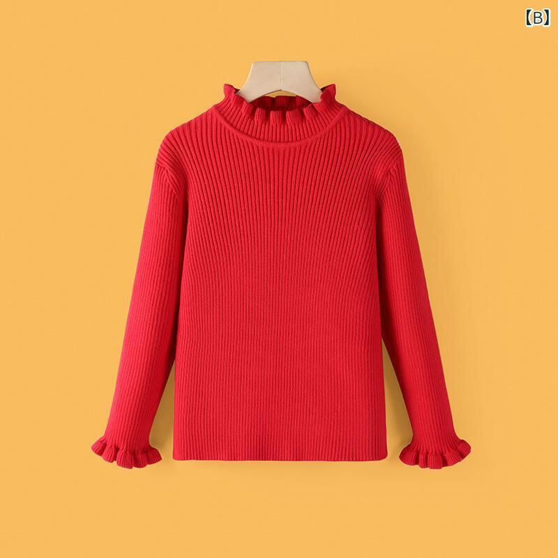 ニット セーター ガールズ 子供服 秋冬 リブニット トップス 女の子 中学生 大学生 ニットウェア カットソー 長袖 無地 かわいい 公園着 普段着 部屋着