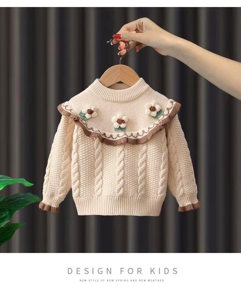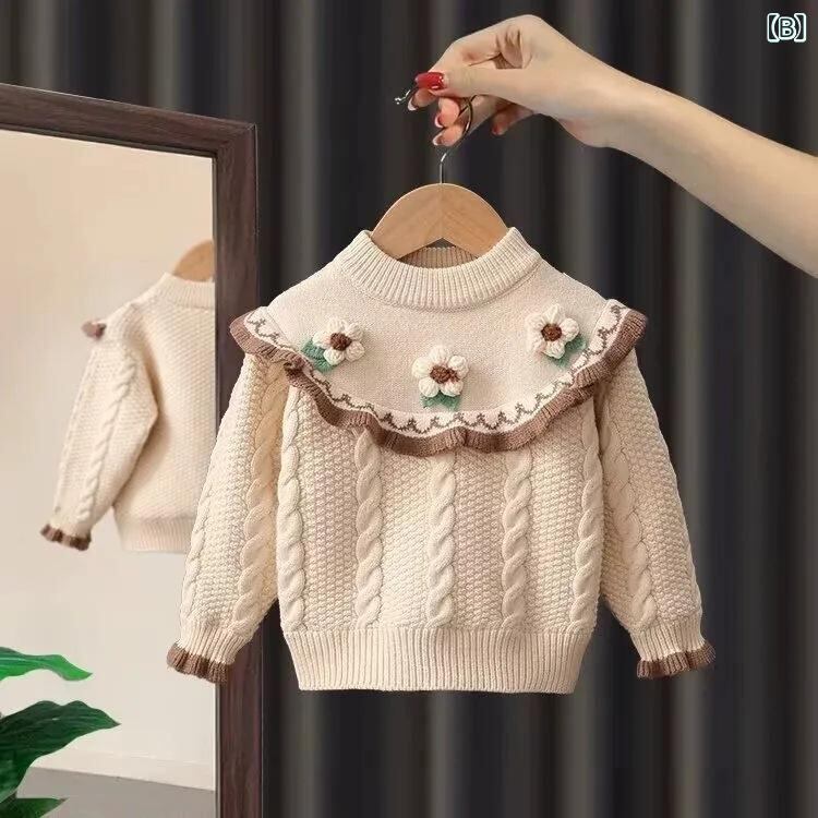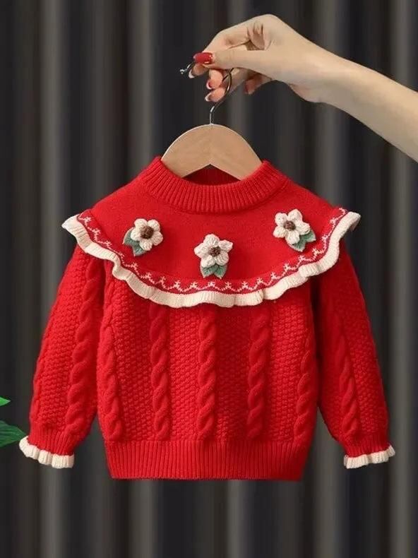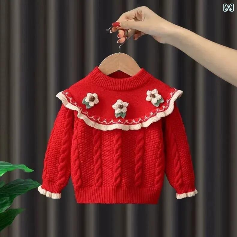 ニット キッズ 女の子 ニットセーター プリンセス風 トップス 秋冬 長袖 発表会 普段着 かわいい 女児 子供服 ガールズ レッド 赤色 アイボリー