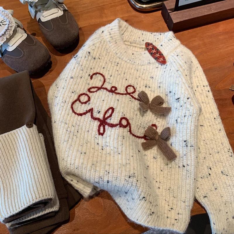 ニット・セーター ガールズ 子供服 長袖 秋冬 厚手 暖かい バタフライ 杏色 かわいい 普段着
