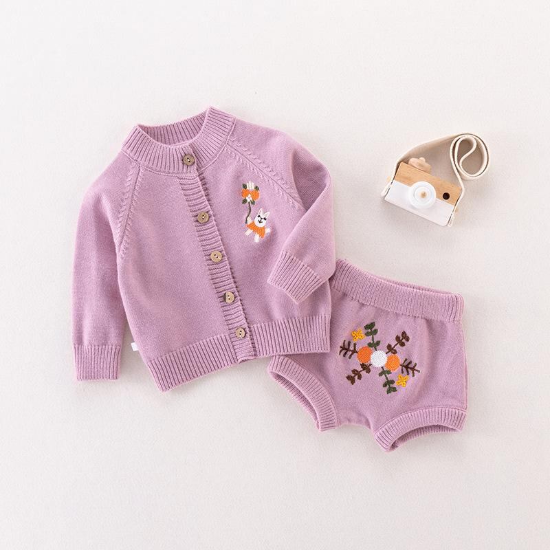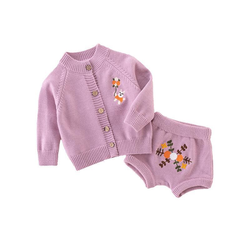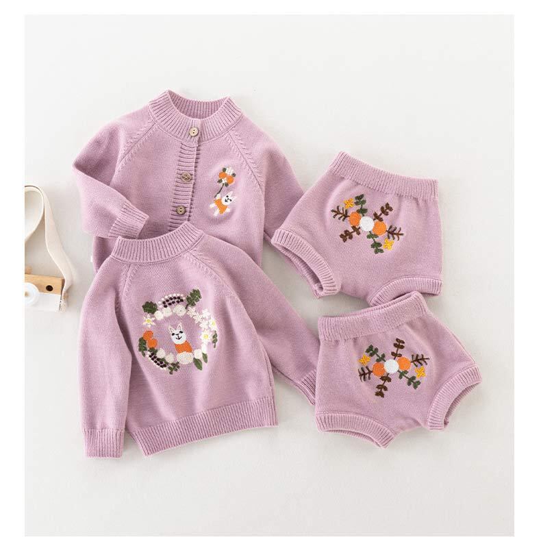 ベビー ニット ロンパース 女の子 赤ちゃん プリンセス ジャンプスーツ セーター 秋冬 セット 73CM 80cm 90cm 100cm 110cm ピンク系 紫 柔らかい 公園着 普段使い 長袖 A類