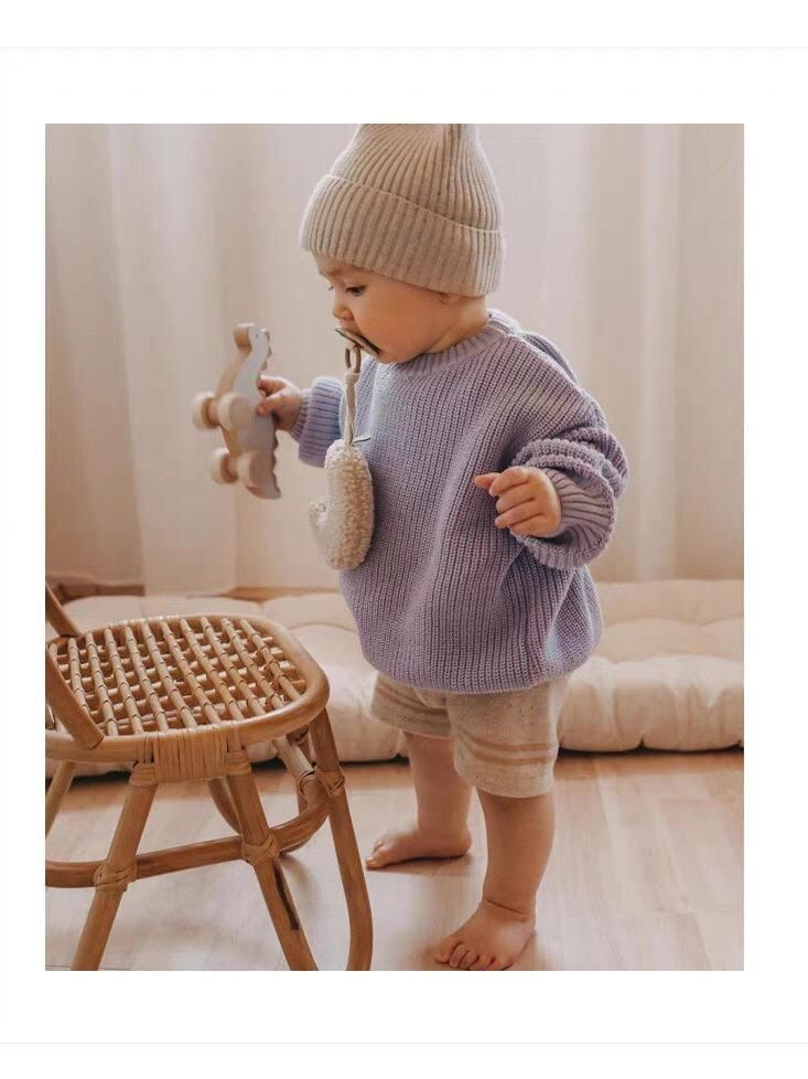 子供服 ニット セーター 秋冬 ベビー 男女兼用 トップス 長袖 丸首 粗 вязаный 柔らかい 伸縮性 無地 紫 浅い カーキ 深い ネイビー キャラメル グレー