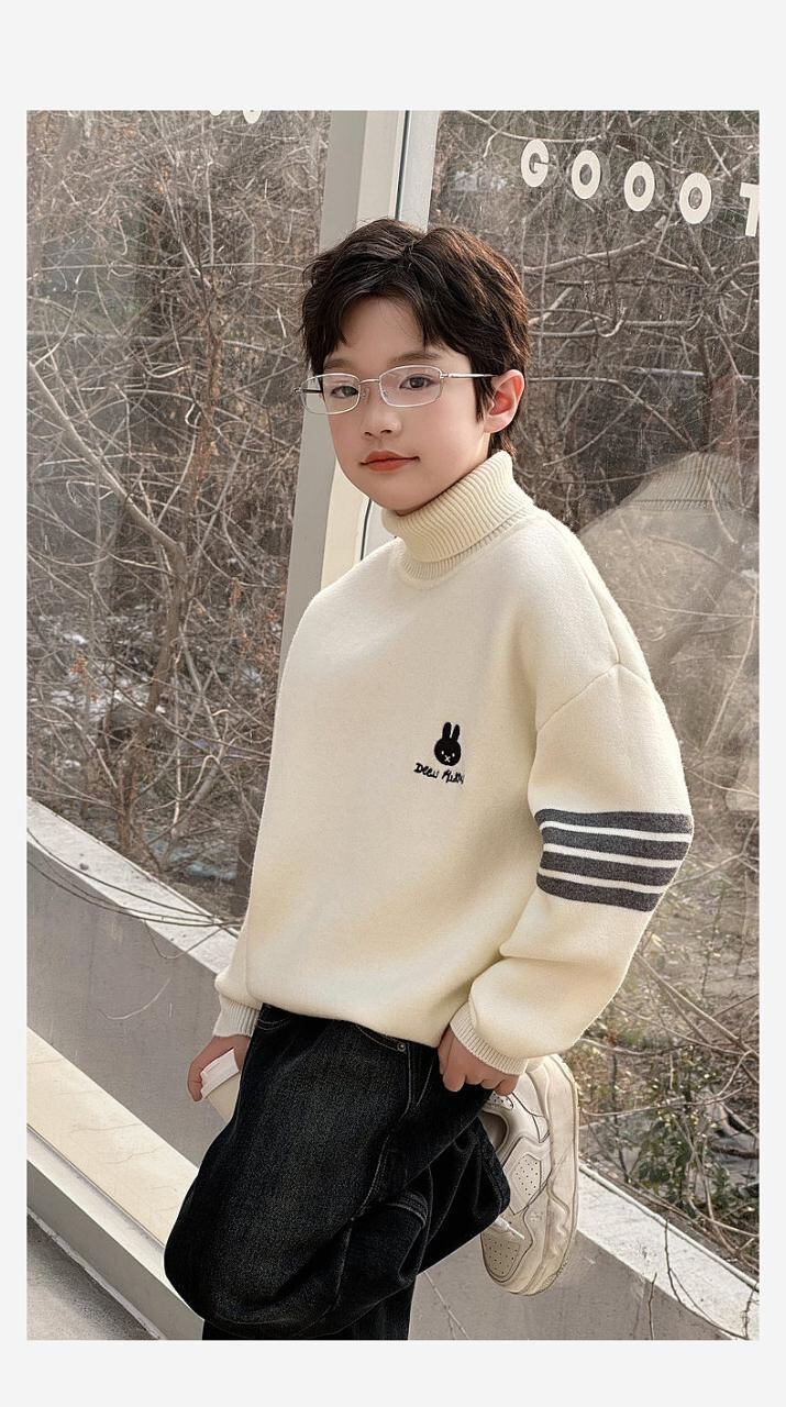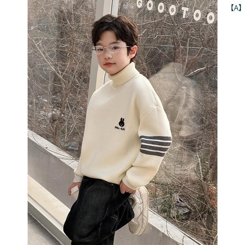 ニット ボーイズ キッズ 子供 冬服 トップス 高 襟 厚手 暖かい セーター 線 120cm 130cm 140cm 150cm 160cm 170cm