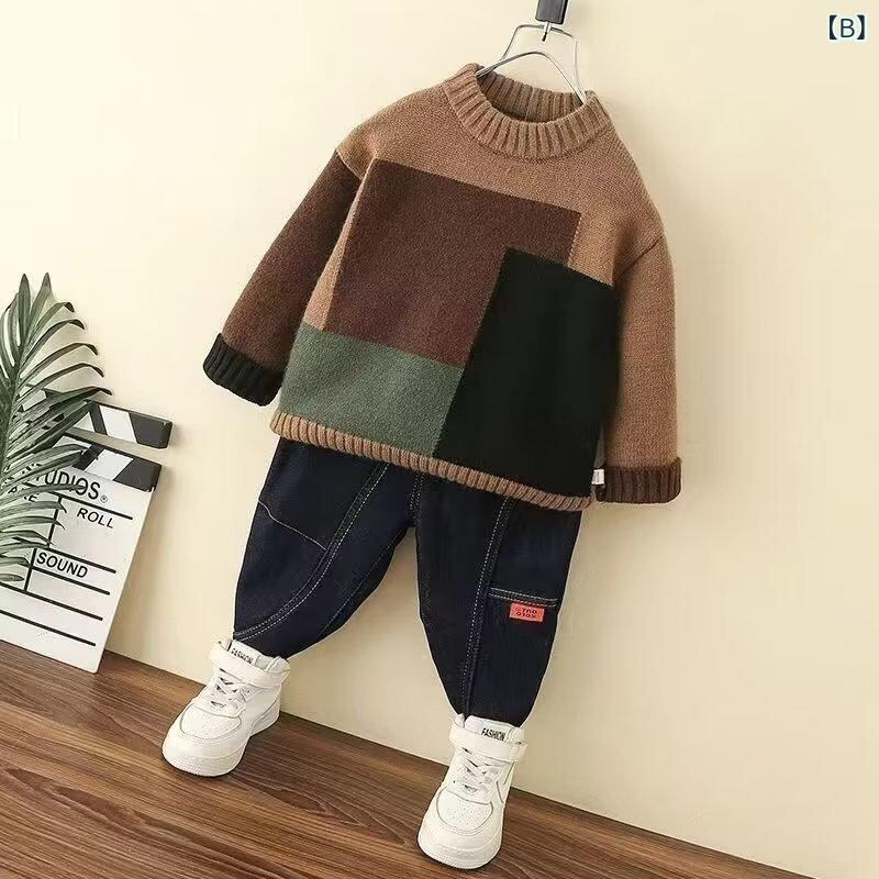 ニット キッズ 男の子 セーター 秋冬 格子柄 コットン 長袖 トップス カットソー 厚手 子供服 ボーイズ ニット 普段使い 通学 120cm 130cm 140cm 150cm 160cm 170cm