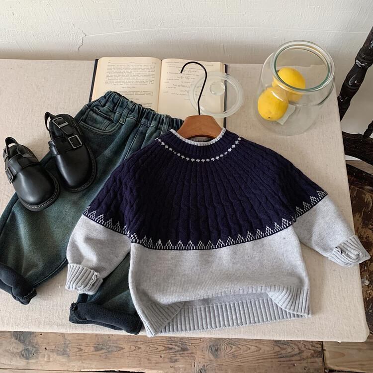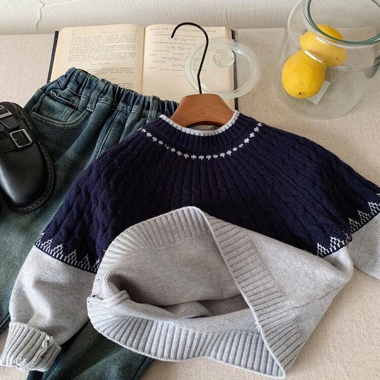 子供服 ニット セーター 男の子 秋冬 プルオーバー 配色 3歳 4歳 5歳 6歳 7歳 8歳 長袖 丸首 普段着 部屋着