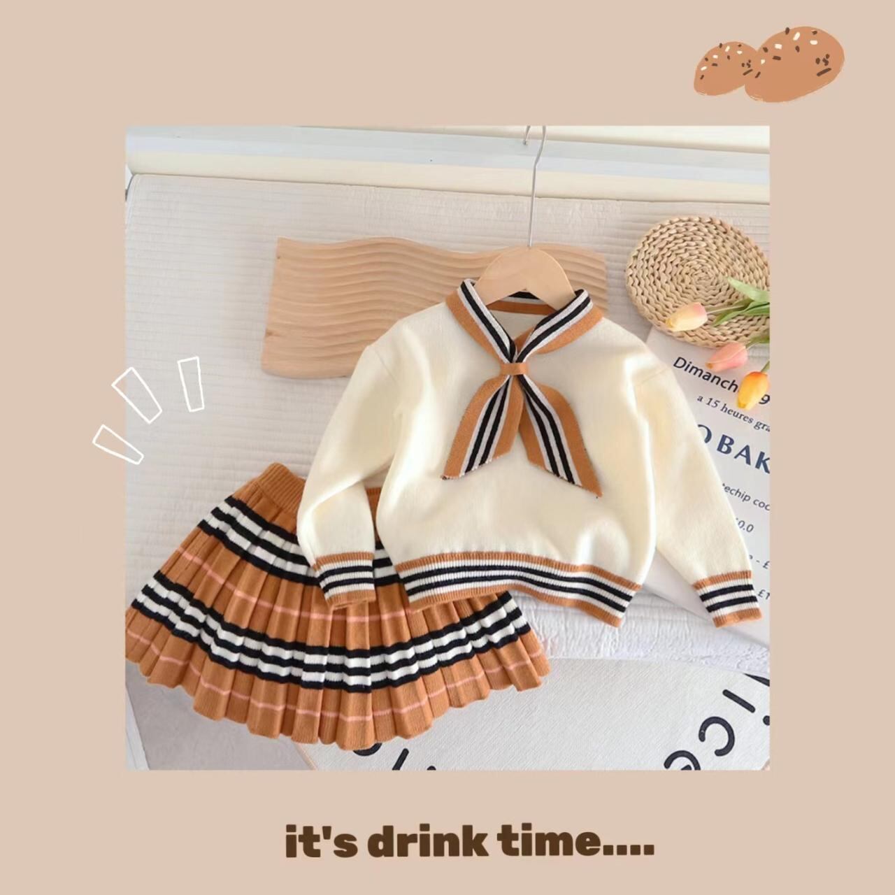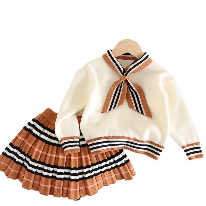 ニット セットアップ キッズ 女の子 ニット セーター プリーツ スカート 2点セット フォーマル セーター トップス 長袖 学院風 春秋冬 子供服 かわいい