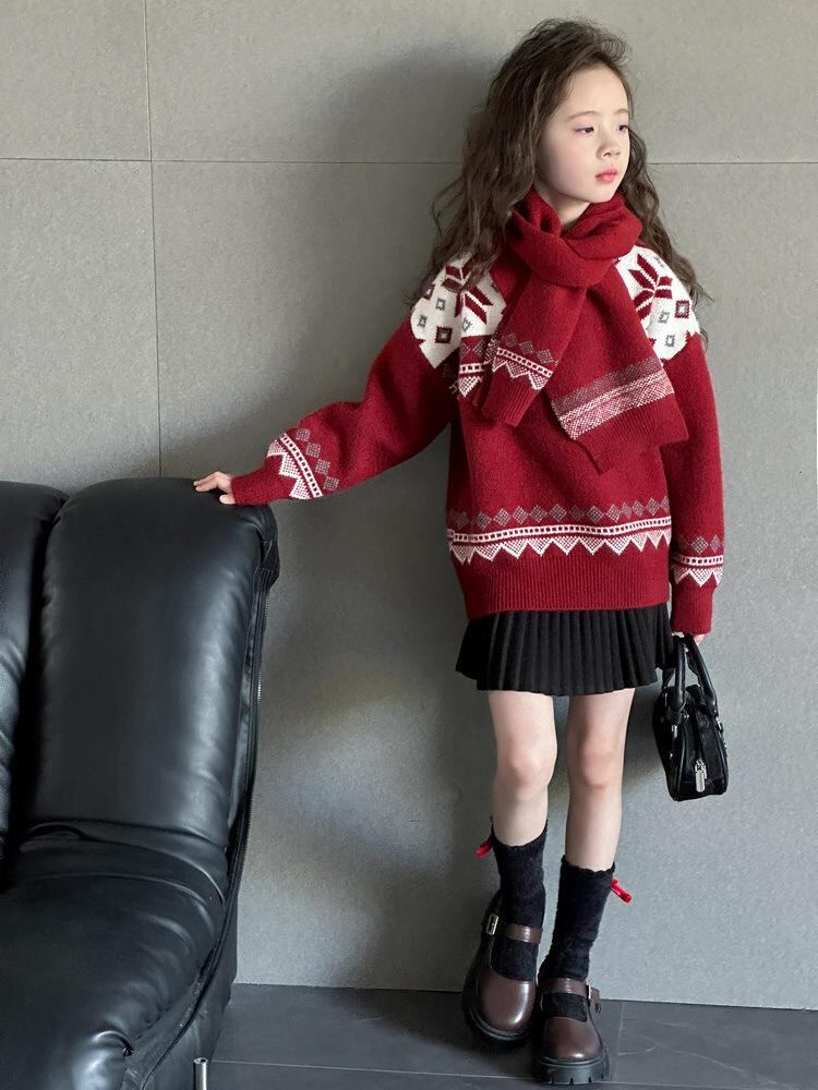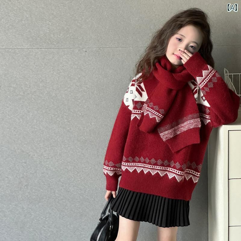 ニット キッズ 女の子 クリスマス セーター 赤色 秋冬 子供服 暖かい ニット トップス 厚手 長袖 ラウンドネック 120cm 130cm 140cm 150cm 160cm 170cm