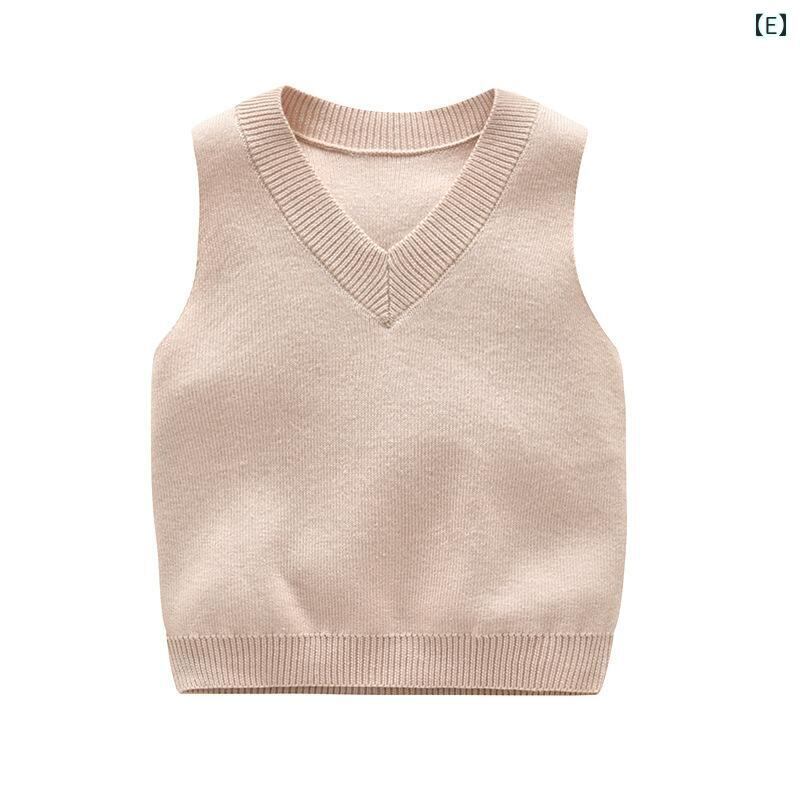 ニットベスト キッズ Vネック 子供服 男の子 女の子 コットン 100% 薄手 チョッキ 無地 春秋 80cm 90cm 100cm 110cm 120cm 青草 緑 紺 魚生 赤 黄 杏 グレー 大紅 黒