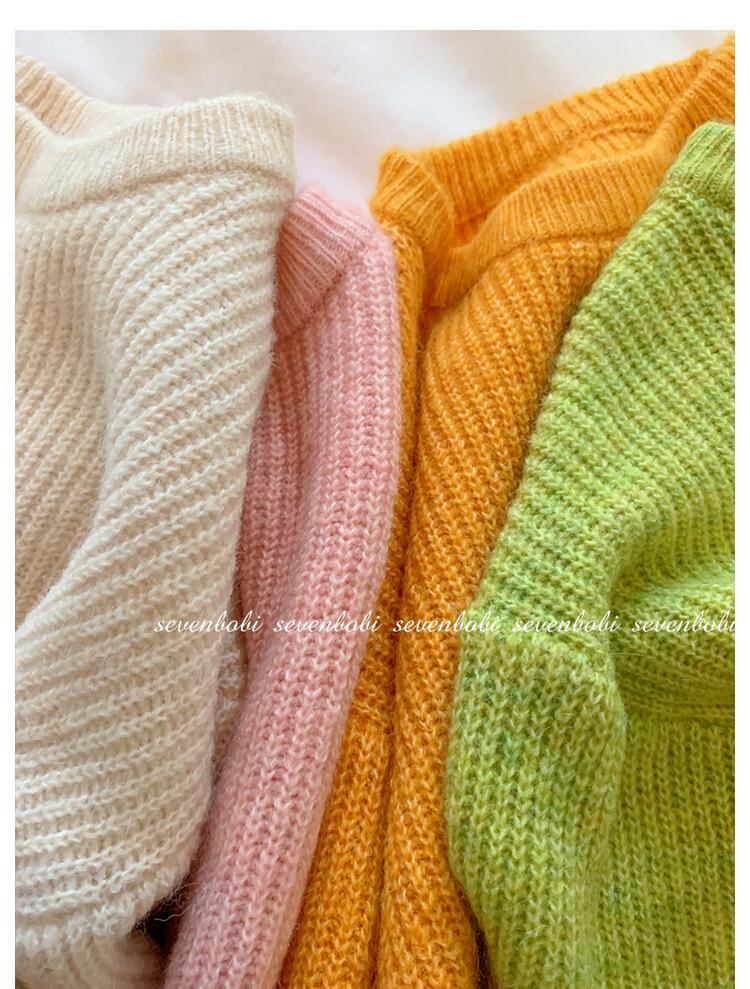 子供服 ニット セーター 女の子 秋物 トップス プリンセス風 かわいい 長袖 丸首 コットン ミドル丈 普段使い お出かけ着 ベージュ ピンク系 グリーン