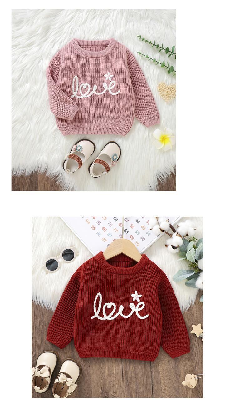 子供服ニット ベビー服 女の子 ニット トップス セーター 長袖 丸首 手刺繍 模様 ピンク 春秋 冬 普段使い かわいい 70 80 90