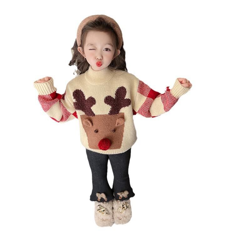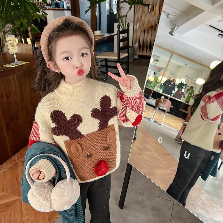 子供服 ニット クリスマス 冬 ニット セーター 長袖 厚手 裏起毛 韓国風 普段使い かわいい 暖かい 女の子 ベビー キッズ 子供