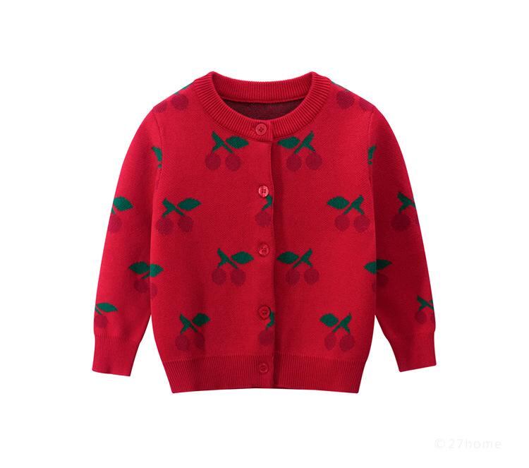 子供服 ニット カーディガン 女の子 韓国風 子供服 トップス 長袖 コットン 秋冬 赤 90 100 110 120 130 140