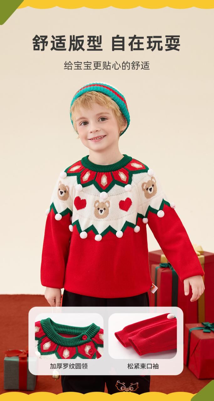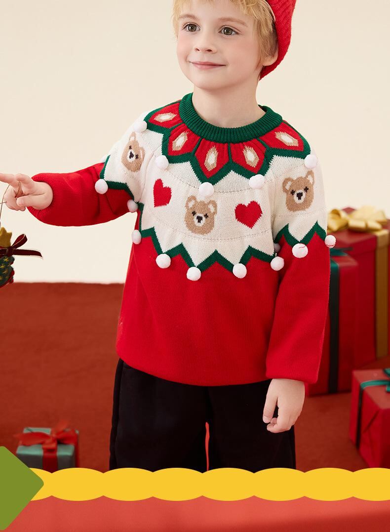 子供服 ニット クリスマス セーター クマ柄 配色 長袖 トップス 秋冬 男女兼用 かわいい 綿 80cm 90cm 100cm 110cm 120cm 130cm 140cm