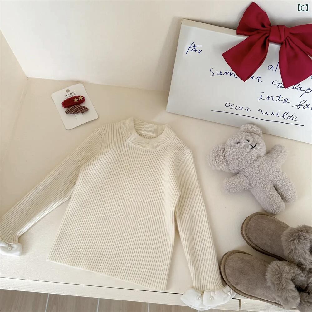 ニット セーター ガールズ 子供 秋冬 あったか 防寒 インナー トップス 女の子 キッズ ベビー かわいい おしゃれ コットン