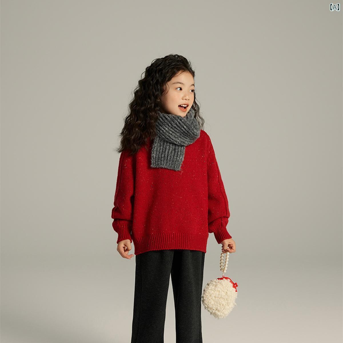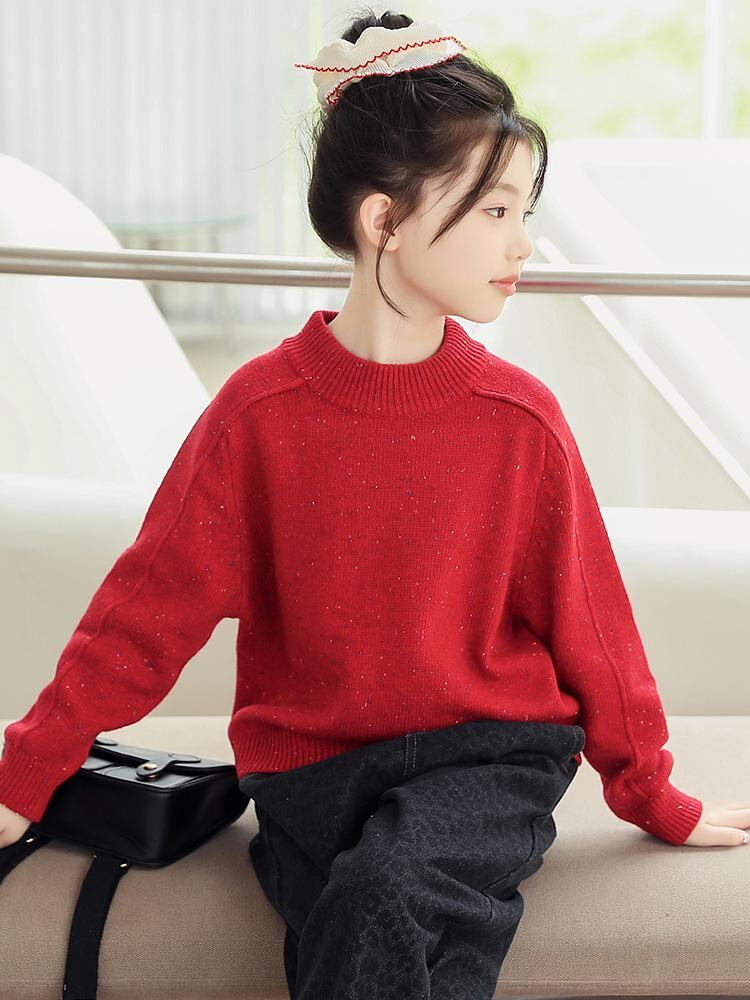 ニット セーター ガールズ 子供服 裏起毛 冬服 女の子 ハーフネック プリンセス かわいい 普段着 お出かけ着 レッド 90 100 110 120 130 140 150 160
