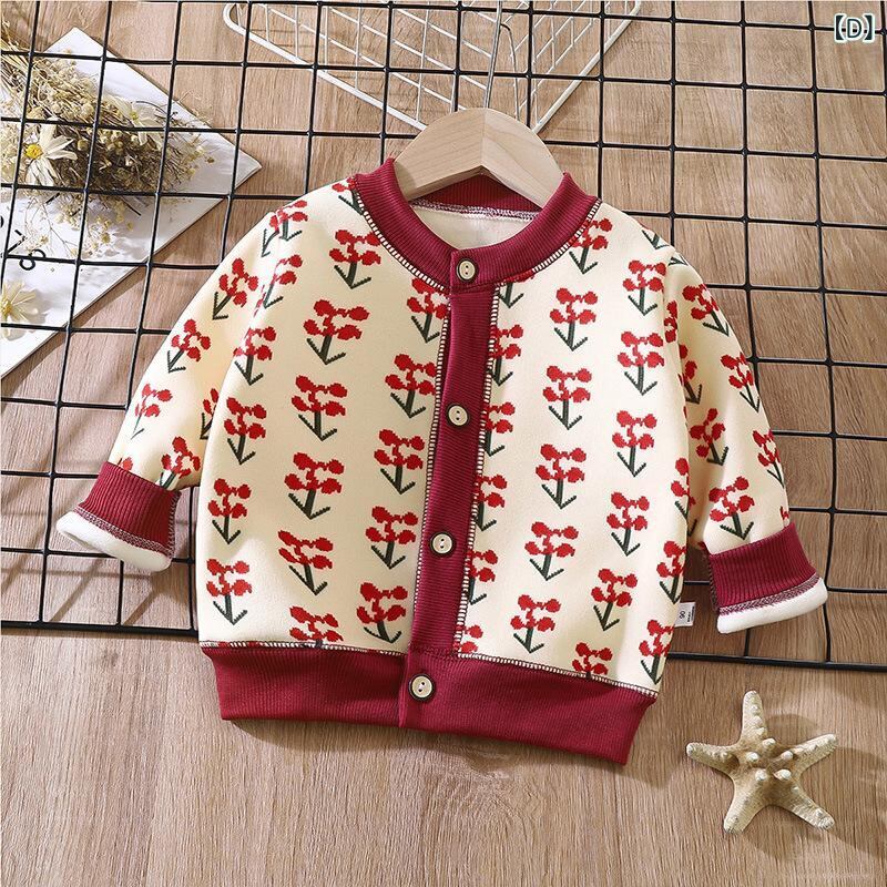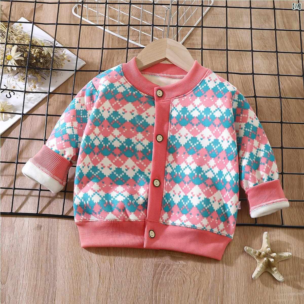 子供服 ニットカーディガン 男女兼用 ベビー服 格子柄 長袖 アウター 厚手 ポリエステル あったか 保温 柔らかい 秋冬 ピンク系