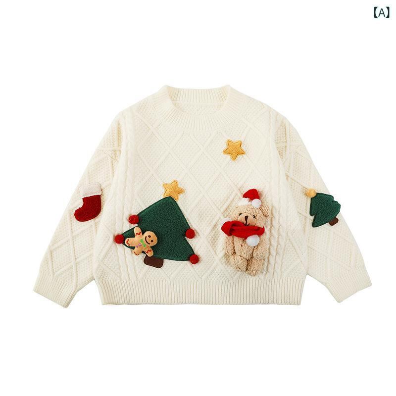 ニット・セーター キッズ・女の子 クリスマス ニットセーター 冬 厚手 ニット ベビー トップス かわいい カジュアル 保温 ベージュ レッド