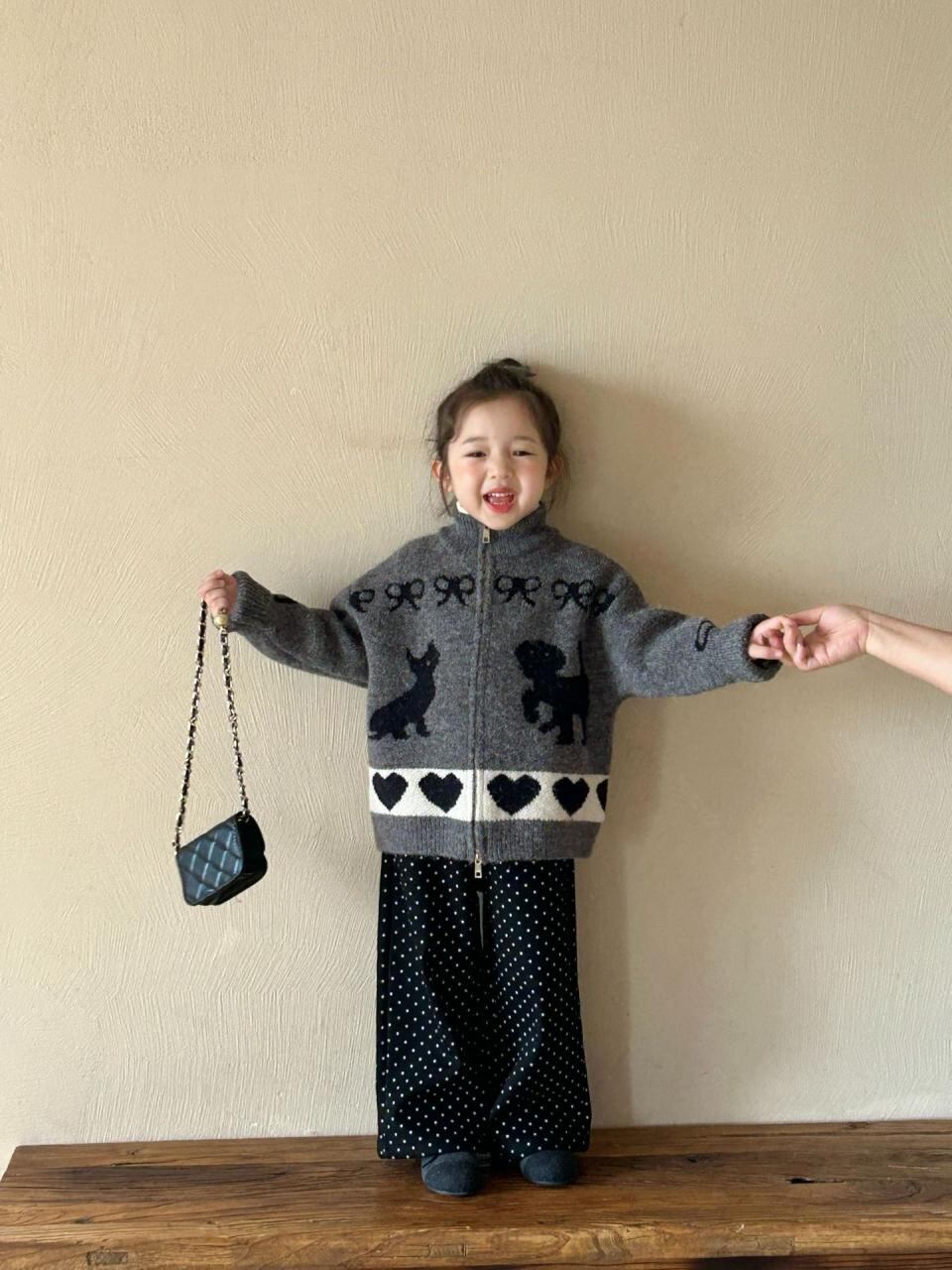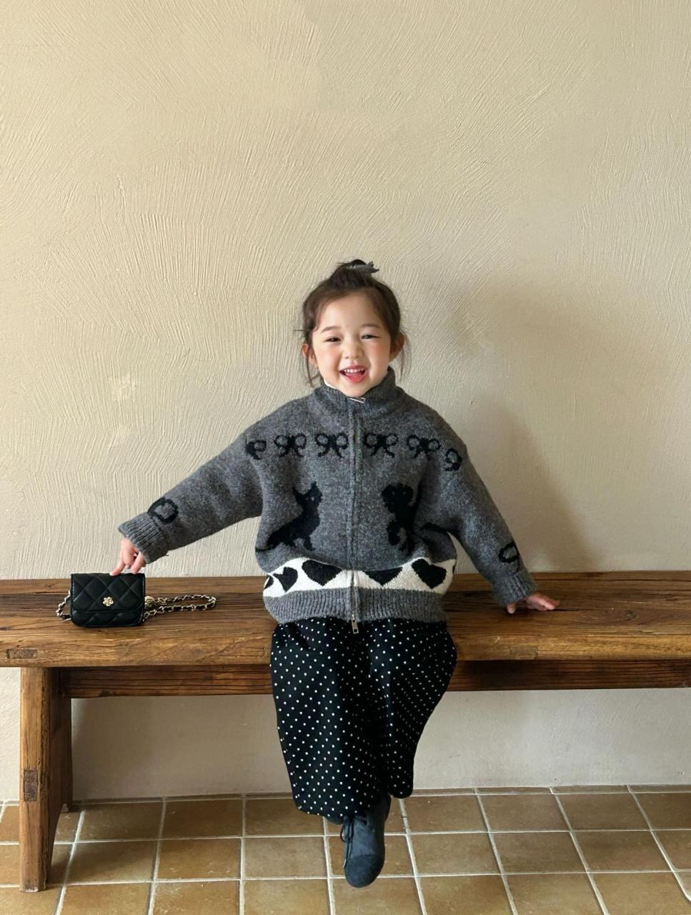 ニット 子供服 男女兼用 カーディガン ジップアップ セーター 厚手 秋冬 韓国風 かわいい カジュアル 高襟 綿 ポリエステル