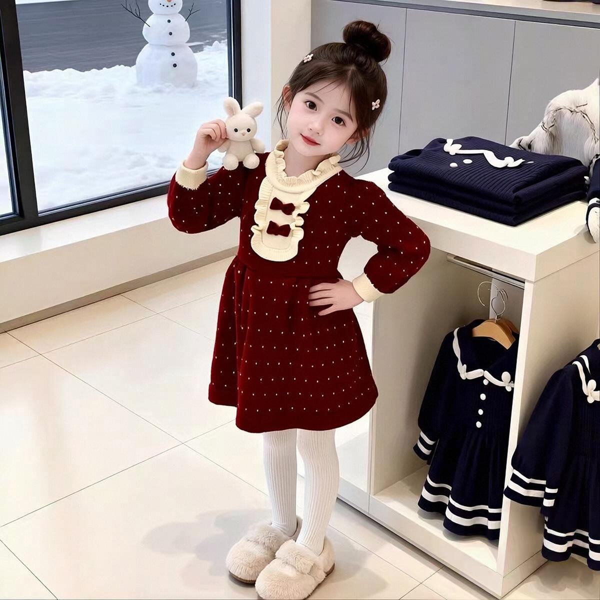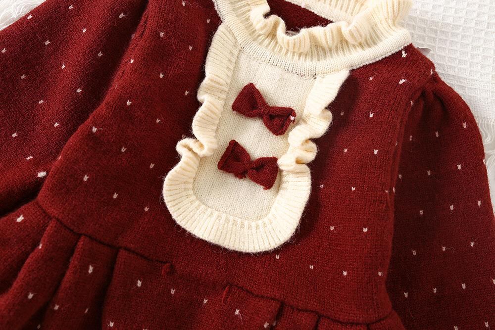 ワンピース キッズ 女の子 ニット セーター プリンセス 韓国風 かわいい チュール 発表会 結婚式 フォーマル 秋冬 赤色 90 100 110 120 130 | Kneebaファッションショップ