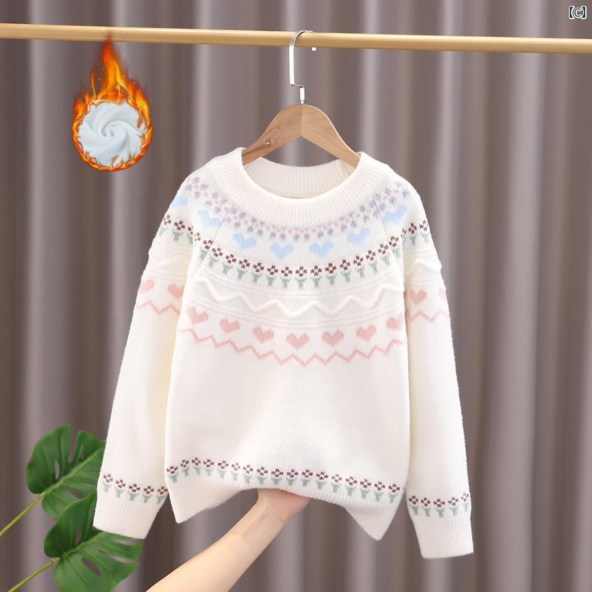 ニット・セーター ガールズ 子供服 トップス 秋冬 長袖 丸首 厚手 ニット ピンク系 オフホワイト 120 130 140 150 160 170