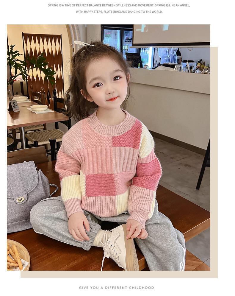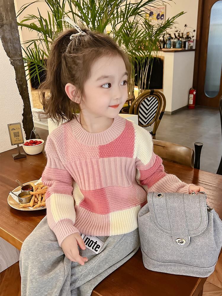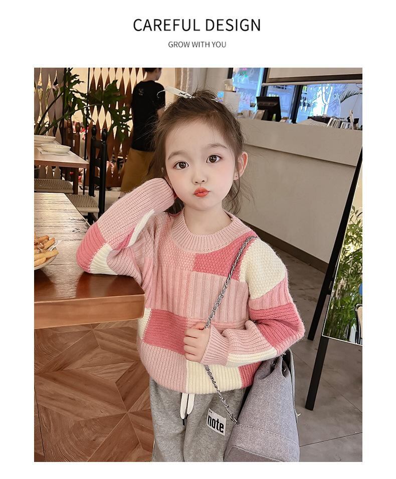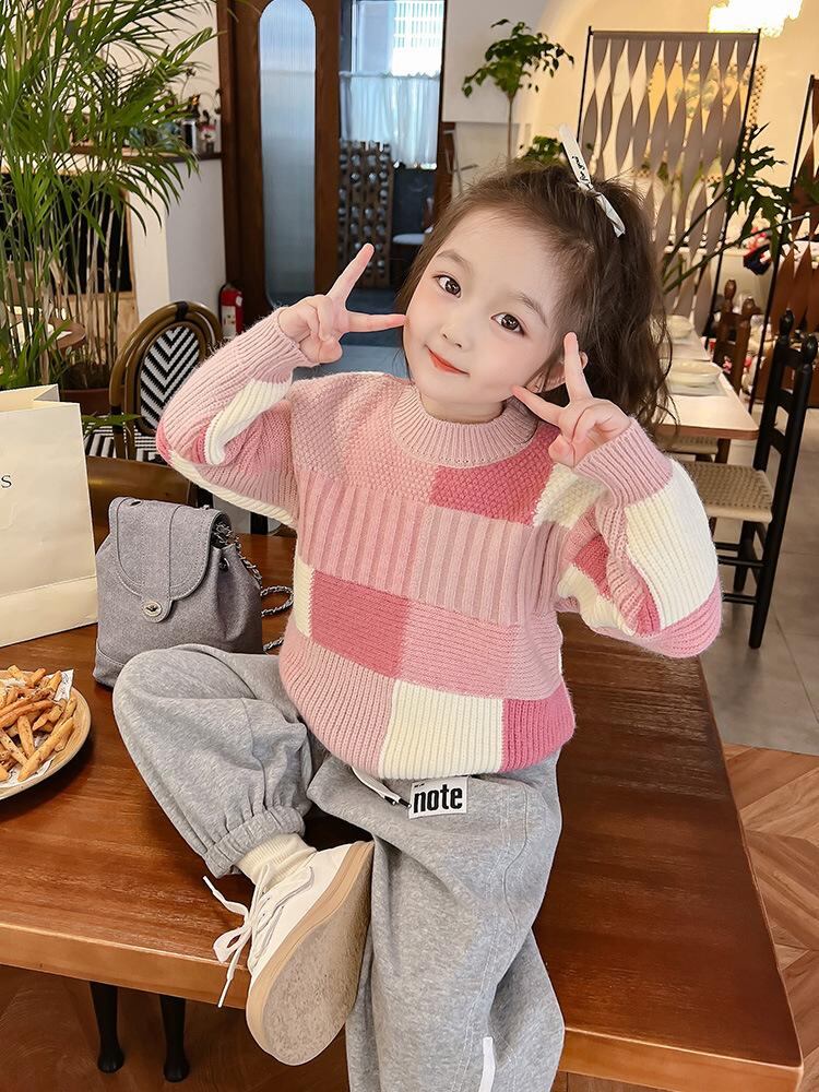 ニット セーター キッズ 女の子 秋冬 子供服 トップス 裏起毛 格子柄 かわいい 普段使い 通園 通学 ピンク系