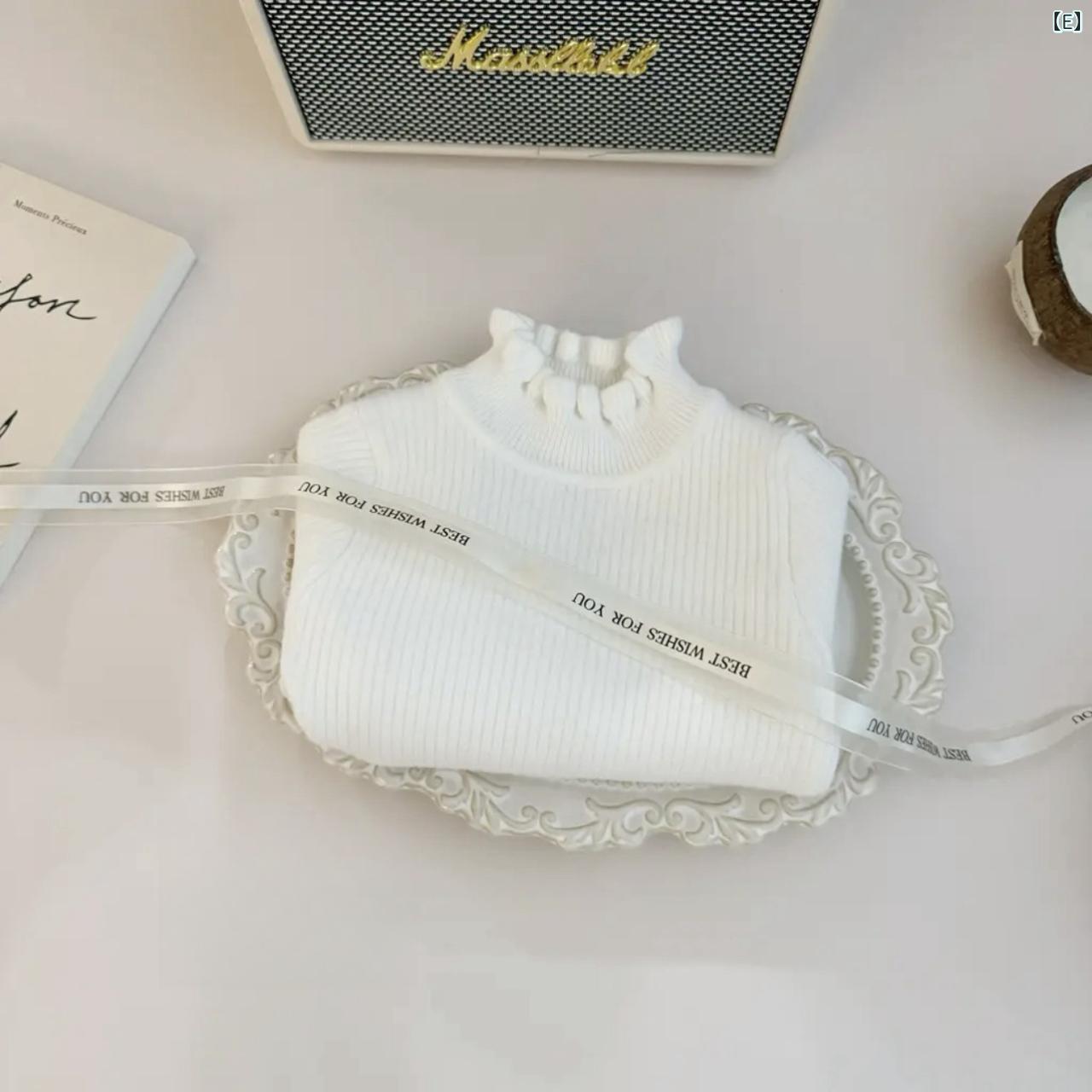 ニット 子供服 女の子 トップス 長袖 カットソー プリンセス風 フリル 無地 厚手 秋冬 かわいい カジュアル 赤 黒 ピンク系 白