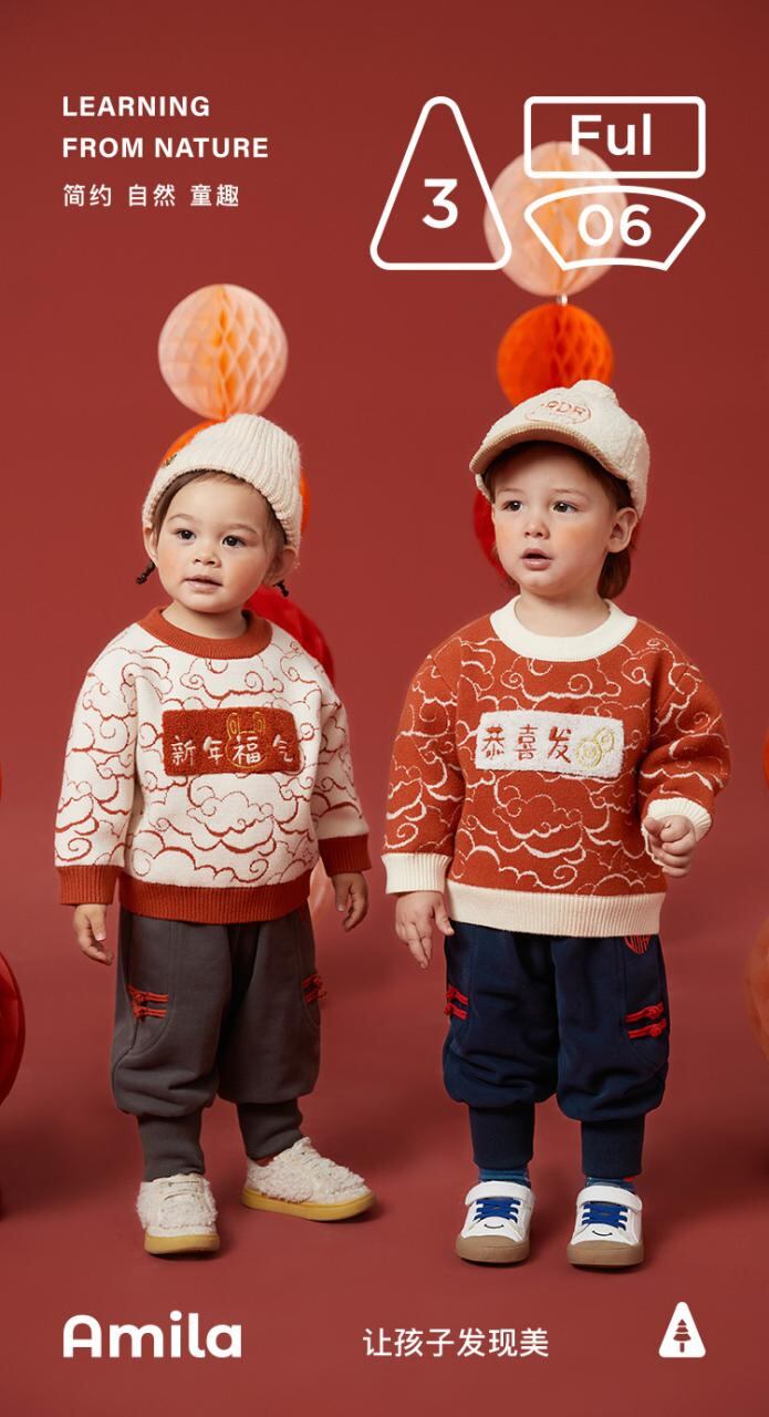 ニット キッズ 冬 厚手 裏起毛 配色 クルーネック トップス 子供服 ベビー 幼児 中国風 あったか セーター