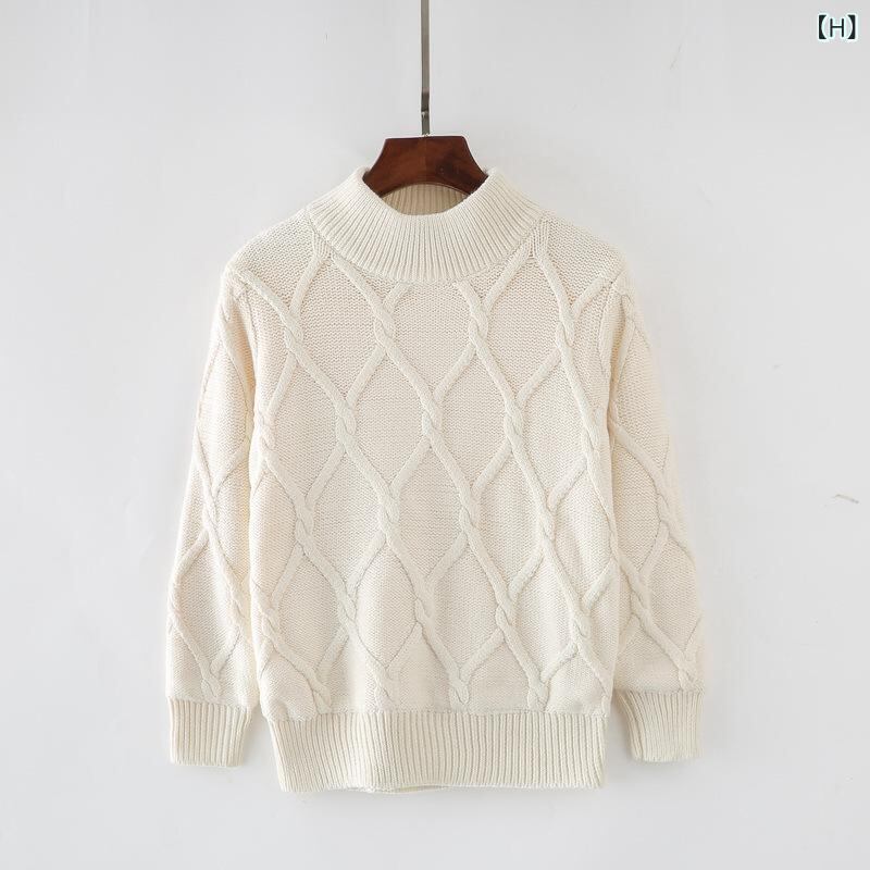 ニット 子供服 長袖ニットセーター 麻花編み 無地 秋冬 防寒 暖かい 裏起毛 男の子 女の子 トップス カットソー 普段着 かわいい おしゃれ グレー ブラウン ピンク系 ブルー系