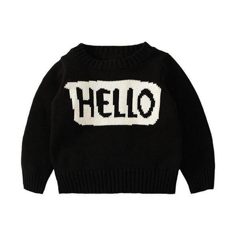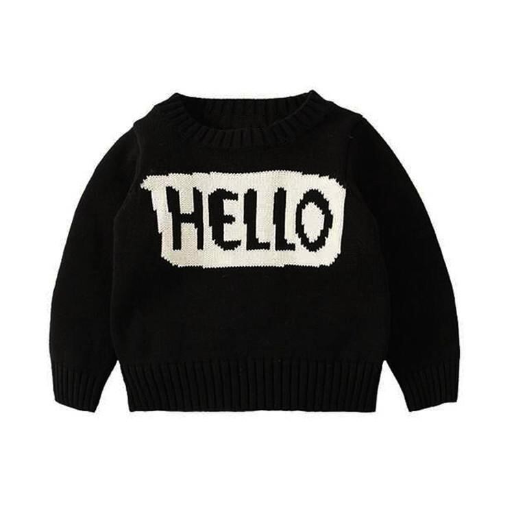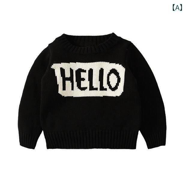 子供服 ニット・セーター ベビー 男女兼用 長袖 丸首 コットン100% アルファベット柄 春秋 冬 普段使い かわいい 80 90 100 110 120 ブラック系