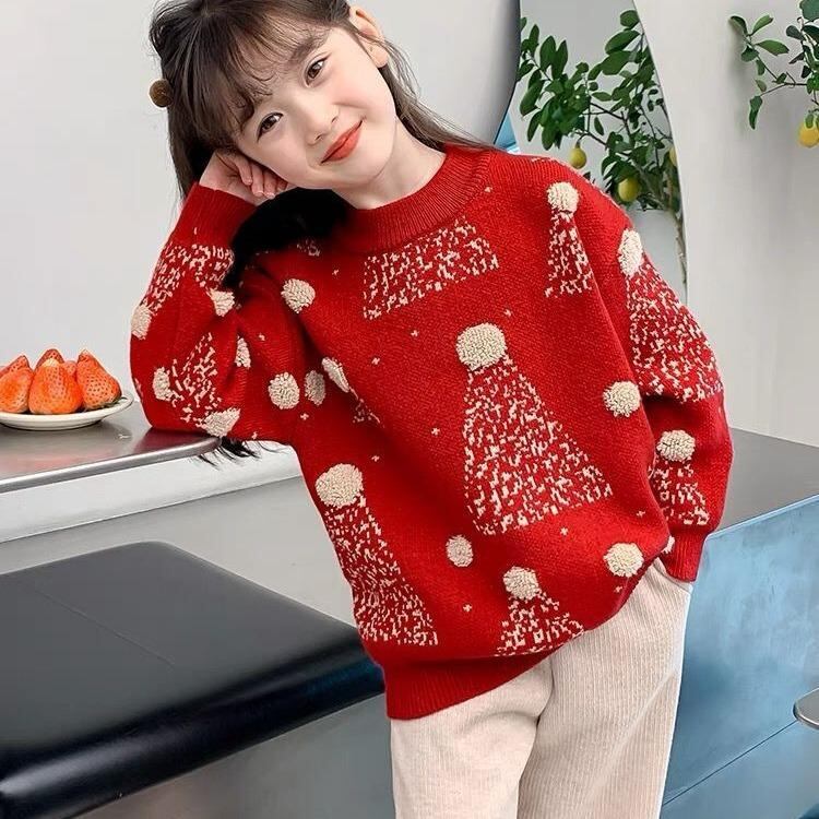 ニット・セーター ガールズ キッズ クリスマス風 長袖 プルオーバー 防寒 ニットセーター 秋冬 かわいい 普段使い お出かけ着