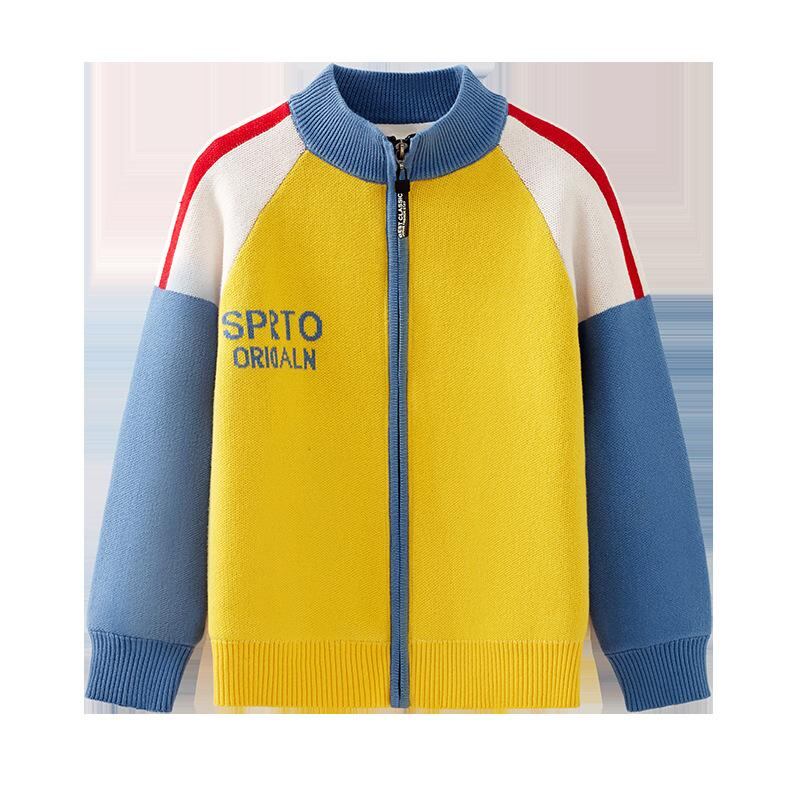 子供服 ニット カーディガン 男の子 秋冬 厚手 ボーイズ トップス 長袖 コットン100% アウター ストライプ イエロー系 グレー系 通学 普段使い