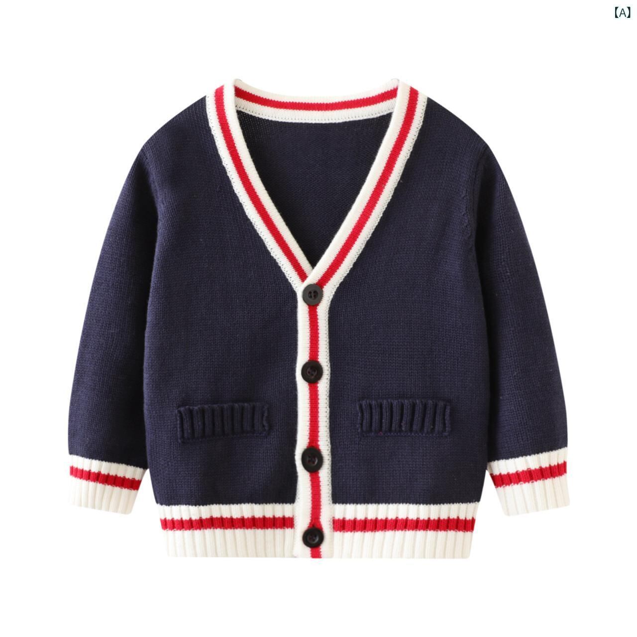 ベビー ニット カーディガン 長袖 コットン 綿100% Vネック 学院風 婴幼儿 アウター 冬 春 秋 ブルー 青色 レッド 赤色 60cm 70cm 80cm 90cm 100cm