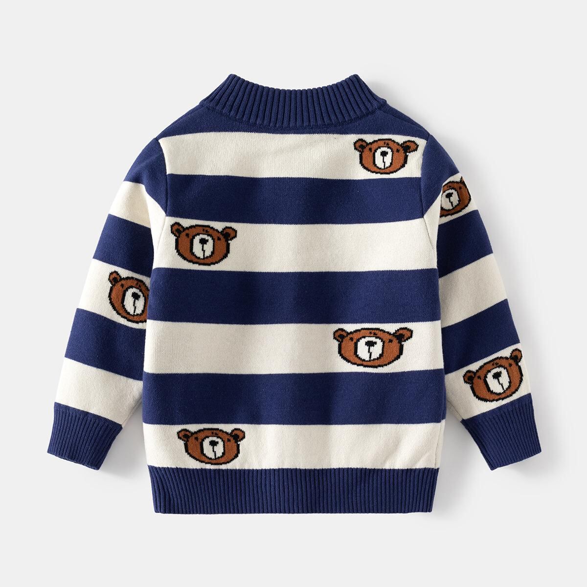 子供服 ニット カーディガン 男の子 ボーイズ 秋 冬 トップス アウター 上着 長袖 丸首 ストライプ コットン 普段着