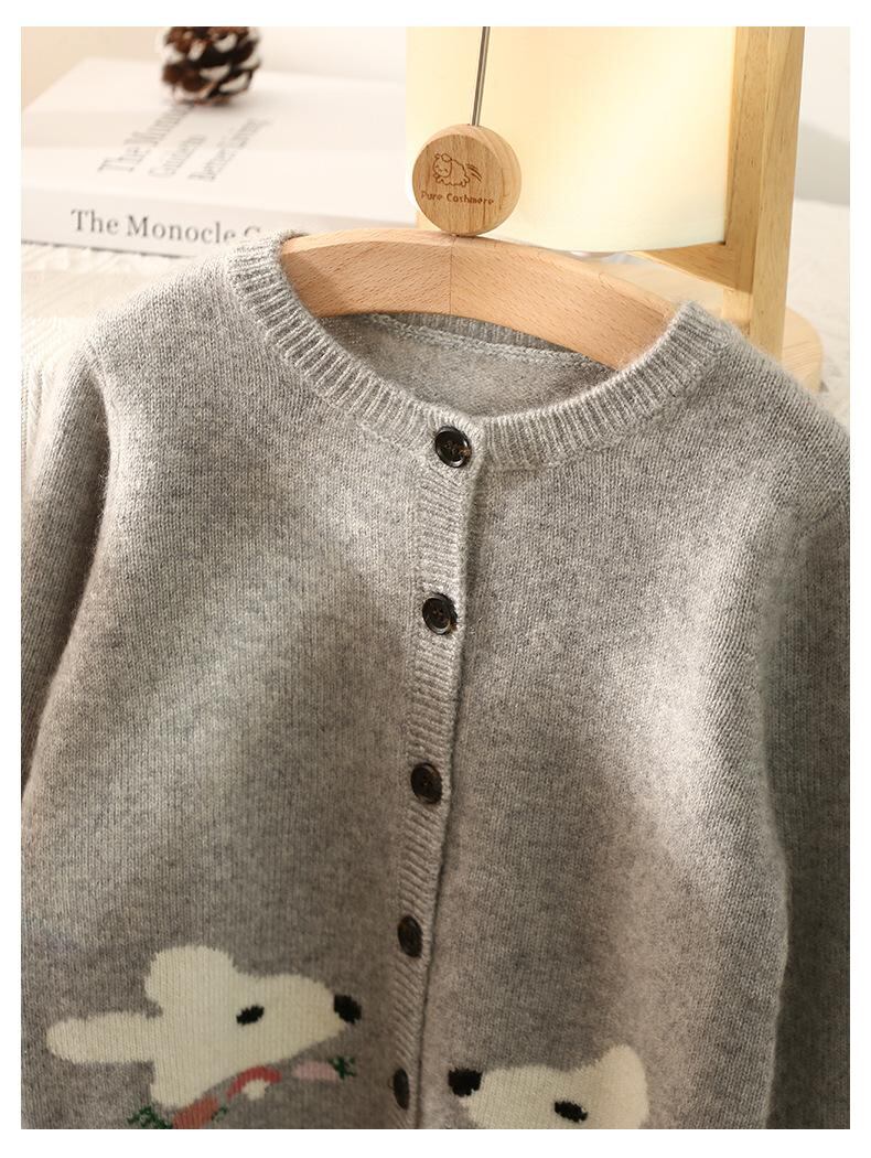 子供服 ニット カーディガン ベビー 100% 羊絨 カートゥーン柄 厚手 秋冬 男女兼用 長袖 丸首 かわいい 普段使い