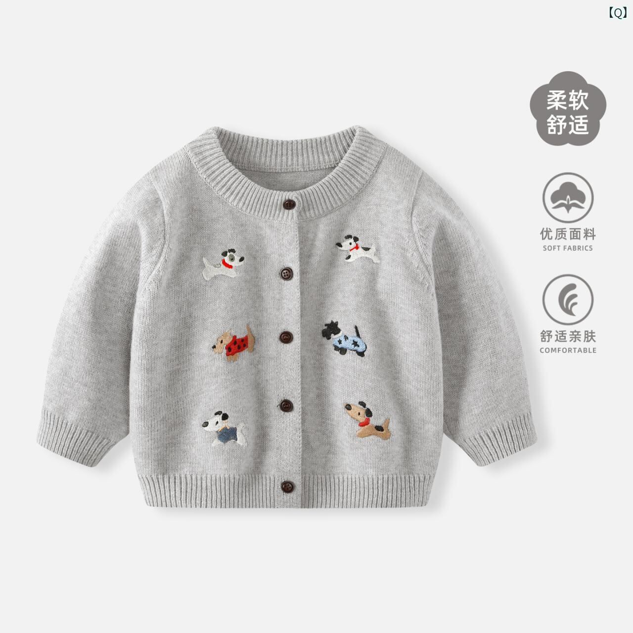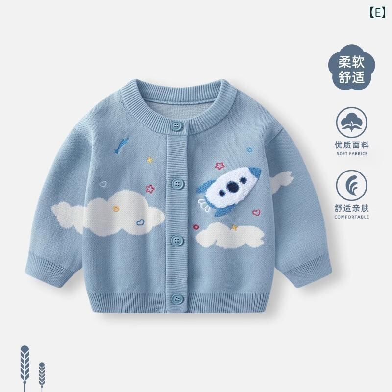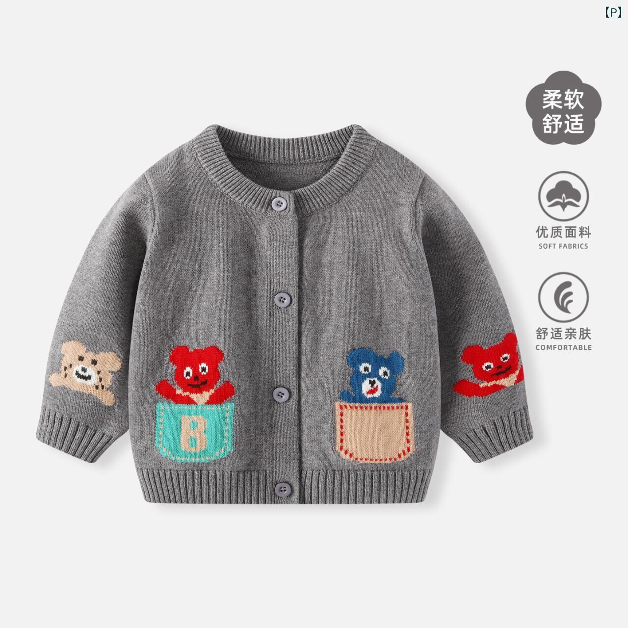 ベビー服 男の子 ニット カーディガン 上着 コート コットン 秋冬 長袖 丸首 前開き 普段着 かわいい シンプル グレー ブルー グリーン レッド ボーダー あったか 裏起毛 70cm 80cm 90cm 100cm