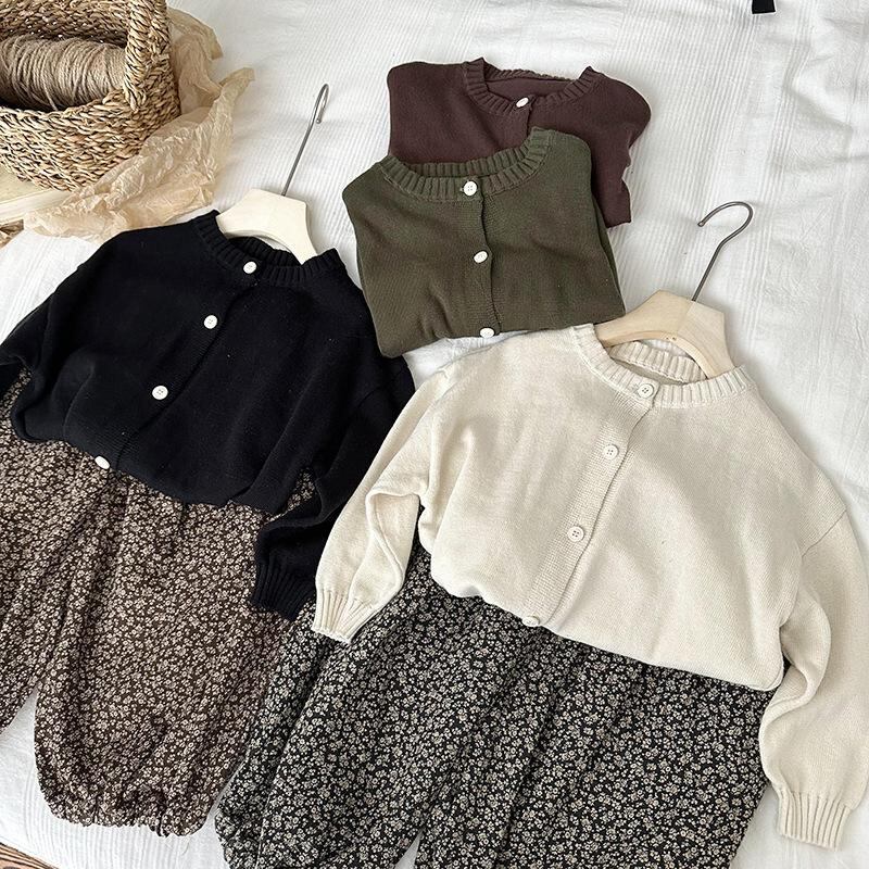 ニット カーディガン キッズ ベビー 秋物 子供服 セーター 女の子 男の子 長袖 トップス 綿100% かわいい おしゃれ 羽織りもの 秋冬 黒 ベージュ ブラウン グリーン