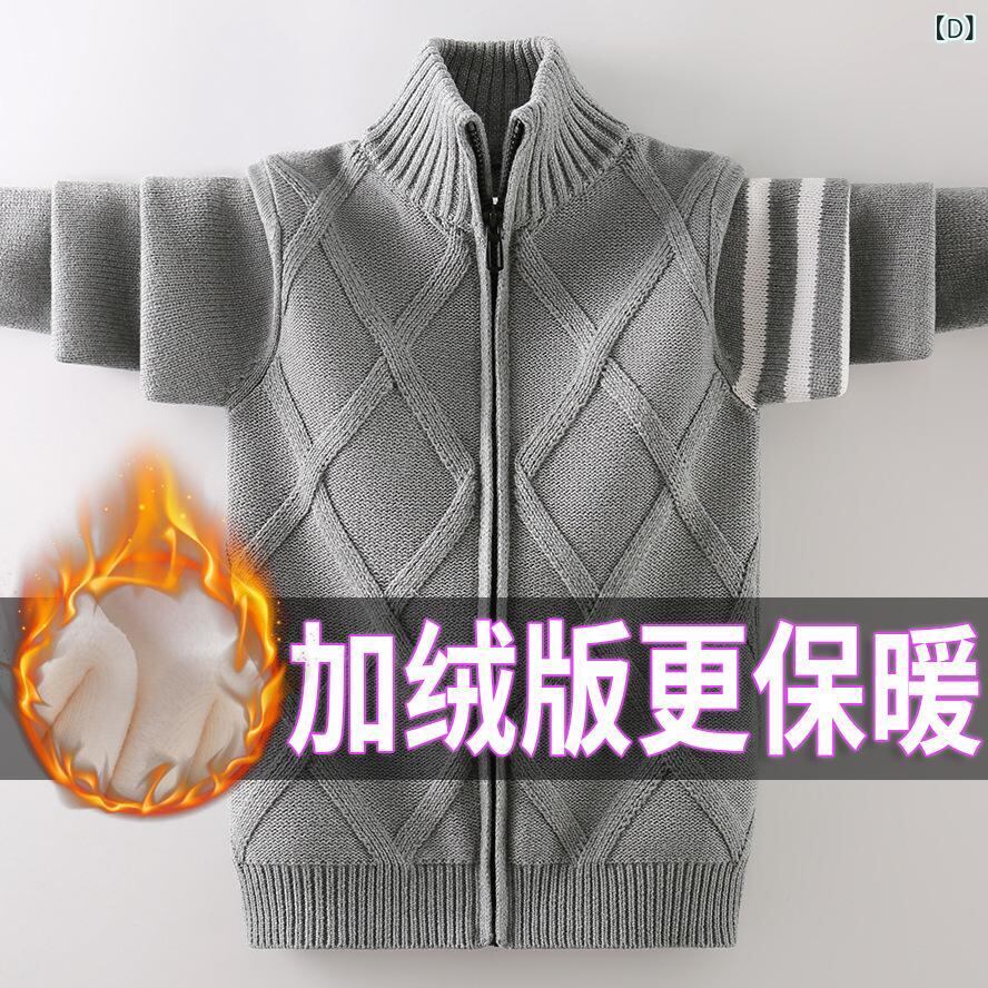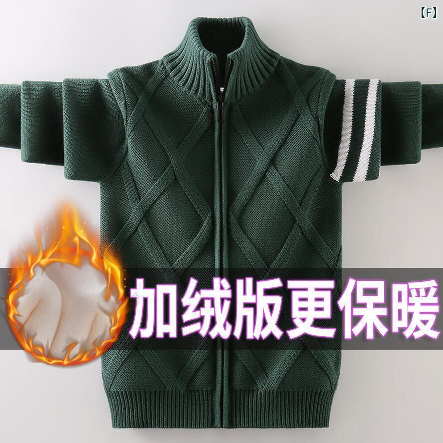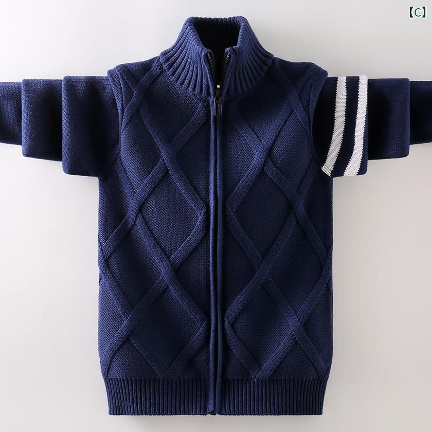 子供服 ニット カーディガン 男の子 長袖 アウター 高学年 ボーイズ ジップアップ セーター 上着 羽織り 厚手 裏起毛 秋冬 ストライプ 綿100% 学院風 スクール 普段使い