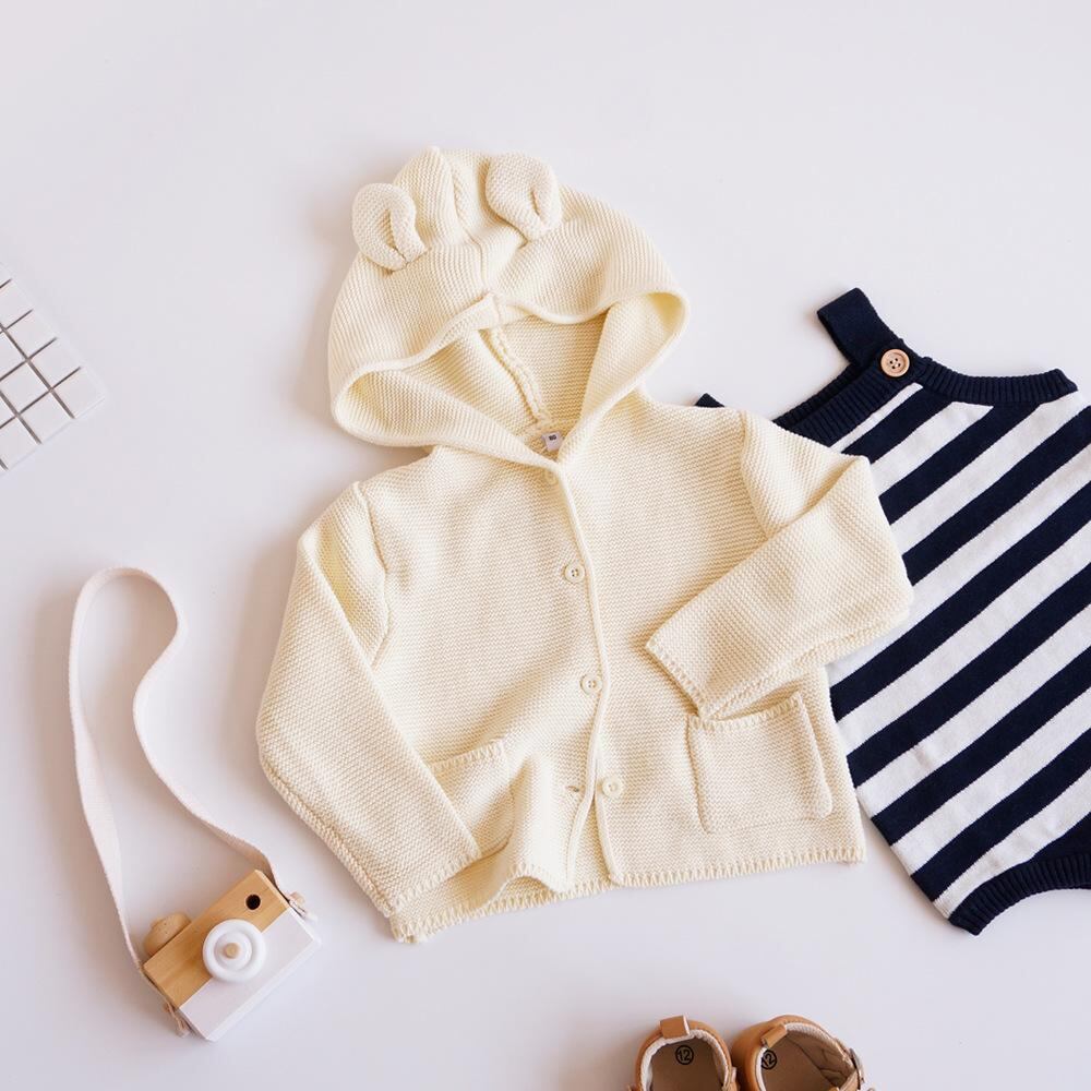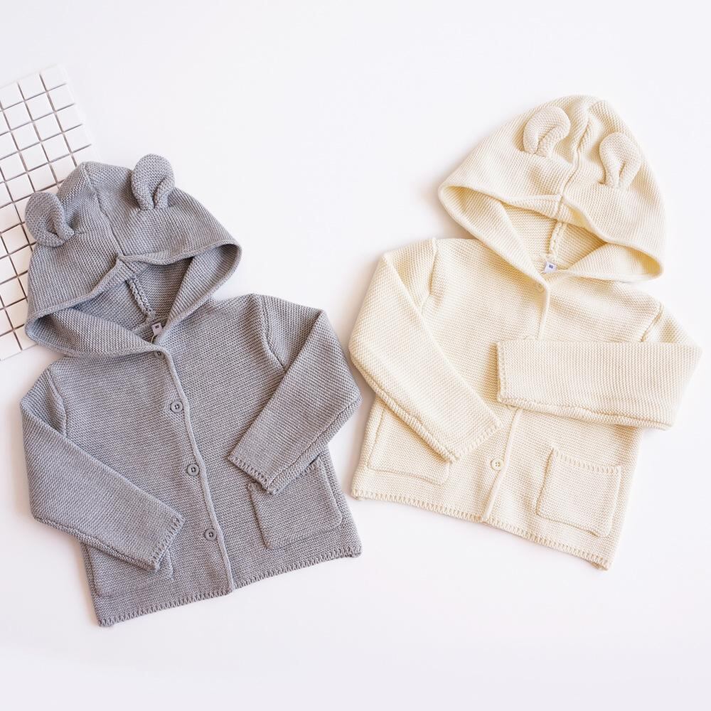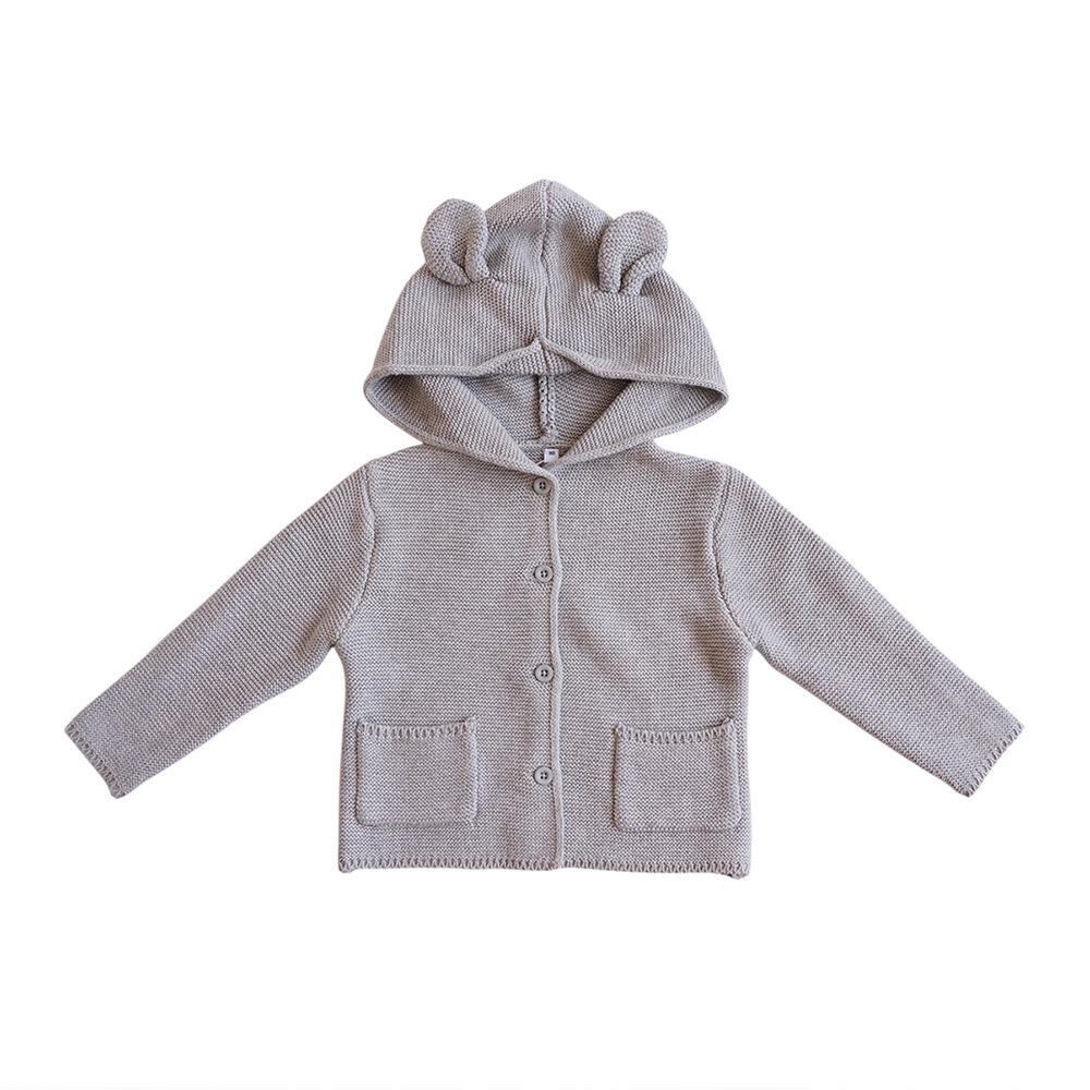 子供服 ニット カーディガン 秋冬 ベビー 男の子 コットン 長袖 トップス 帽子付き アウター 綿100% 幼児 園児 普段使い かわいい おしゃれ グレー アイボリー