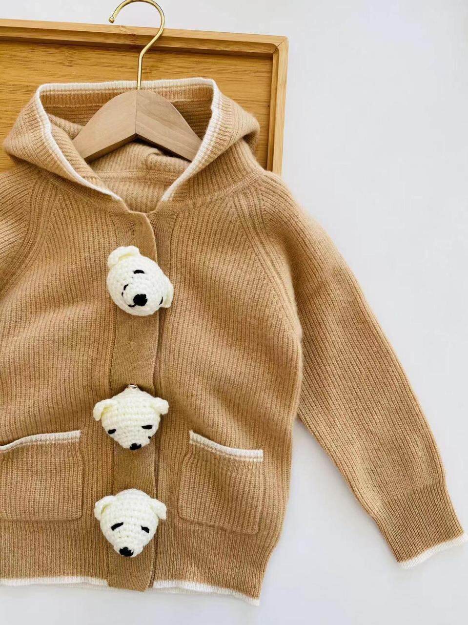 子供服 ニット 秋冬 子供用カーディガン 長袖 ラウンドネック 熊柄 刺繍 厚手 ニット セーター 男の子 女の子 キッズ トップス ウール