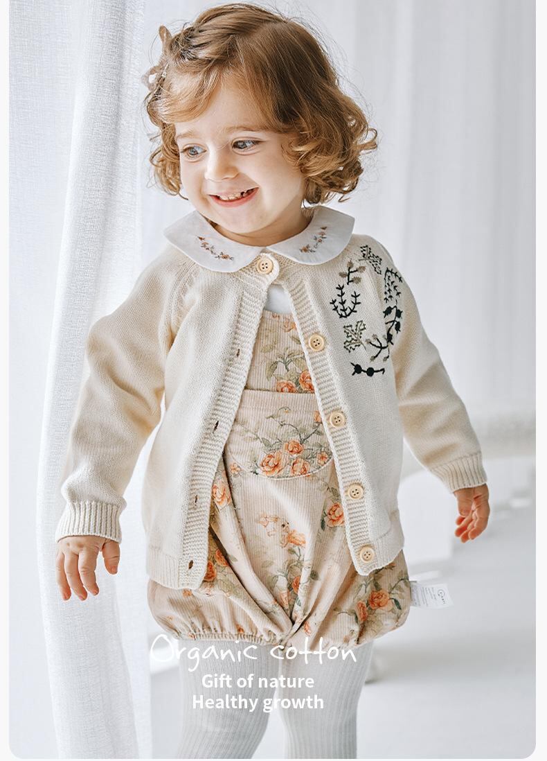 ベビー服 ニット カーディガン 春秋 冬 ベビー セーター 男の子 女の子 トップス 綿100% 無地 花柄 かわいい 柔らかい 赤ちゃん 子供服 長袖 前開き 防寒 普段使い ベージュ 80 90 100 110 120