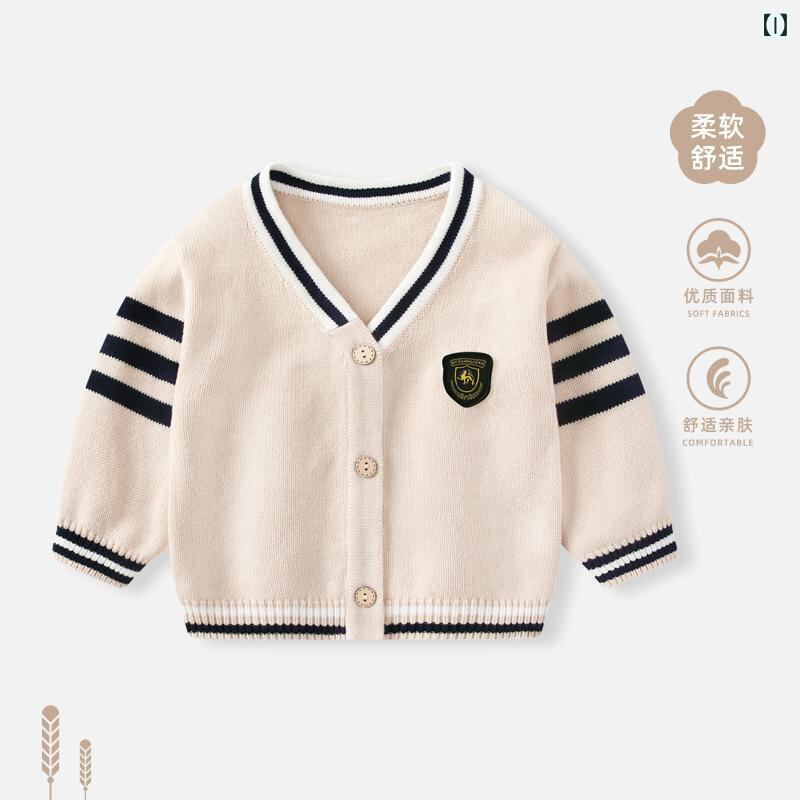 ニット・セーター キッズ・ベビー 男の子 秋物 ニットカーディガン 綿 長袖 幼児 子供服 トップス アウター おしゃれ かわいい 73cm 80cm 90cm 100cm 110cm 杏色 ブルー グレー グリーン