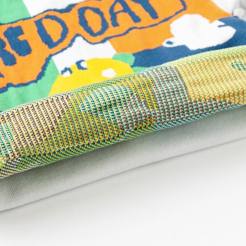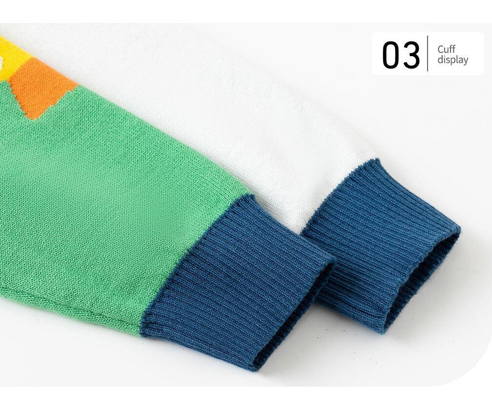 子供服 ニット 子供 男の子 長袖 トップス 秋冬物 カットソー コットン100% 恐竜柄 切り替え 普段着 通園着 イエロー系 ブルー系