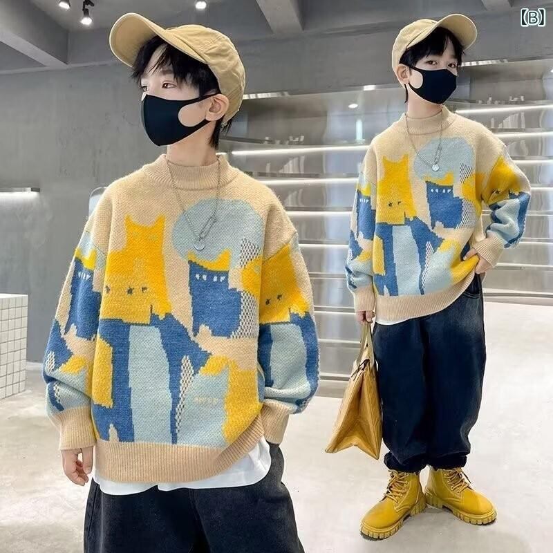 ニット セーター キッズ 男の子 秋冬 子供服 トップス 長袖 丸首 厚手 暖かい 普段着 通学 120 130 140 150 160 170 グレー イエロー | Kneebaファッションショップ