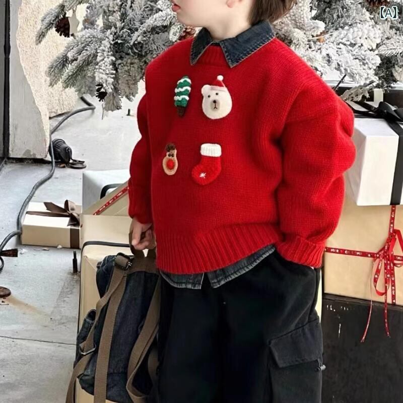 ニット セーター キッズ クリスマス 秋冬 男の子 女の子 子供服 長袖 トップス 丸首 90 100 110 120 130 140 コットン 中国風