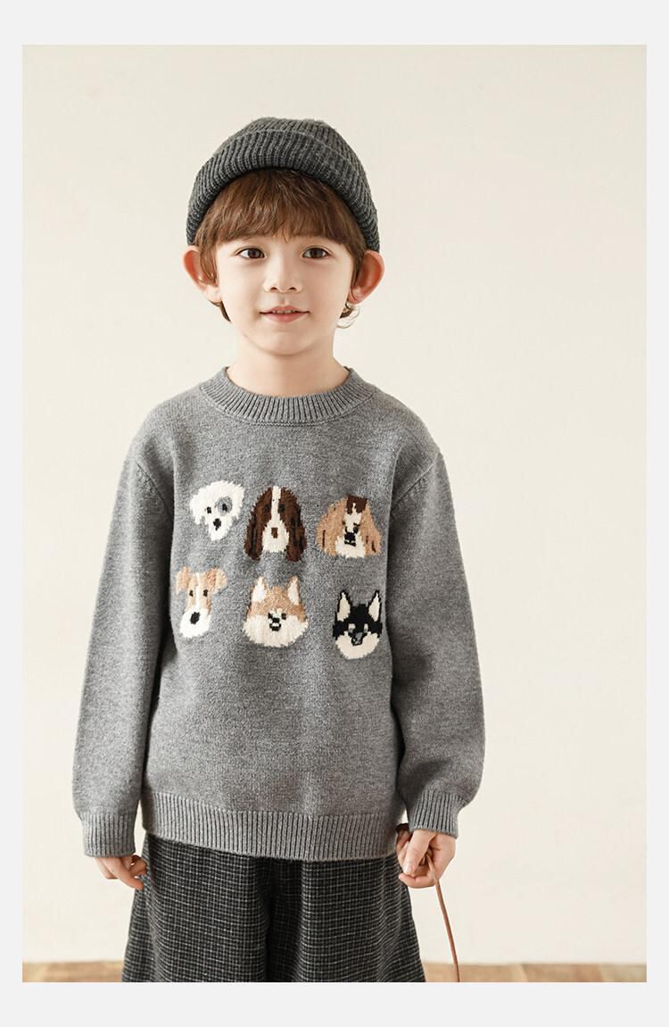 ニット キッズ 男の子 長袖 セーター 冬用 子供服 トップス 暖かい 柔らかい 動物柄 ブルー 麻混