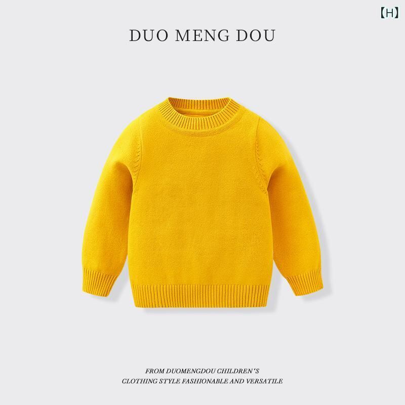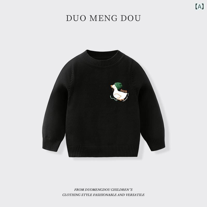 ニット・セーター キッズ 男の子 裏起毛 冬用 あったか 丸首 トップス 子供服 かわいい 普段着 通園 通学 ブラック イエロー ホワイト ブルー