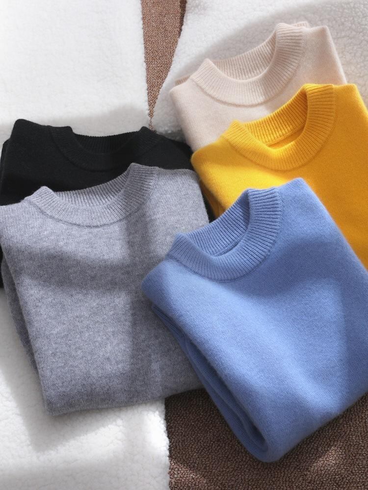 子供服 ニット・セーター 厚手ピュアウールセーター 男の子 女の子 長袖トップス インナーウェア ニットウェア 暖か 秋冬 ミドル丈 無地 丸首 ベージュ キャメル ブラック レッド カーキ ブルー パープル グレー グリーン ピンク系 100cm 11
