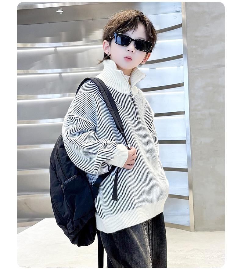 子供服 ニット セーター 男の子 秋冬 高学年向け 高 伸縮性 ハイネック ボーダー柄 厚手 普段着 部屋着